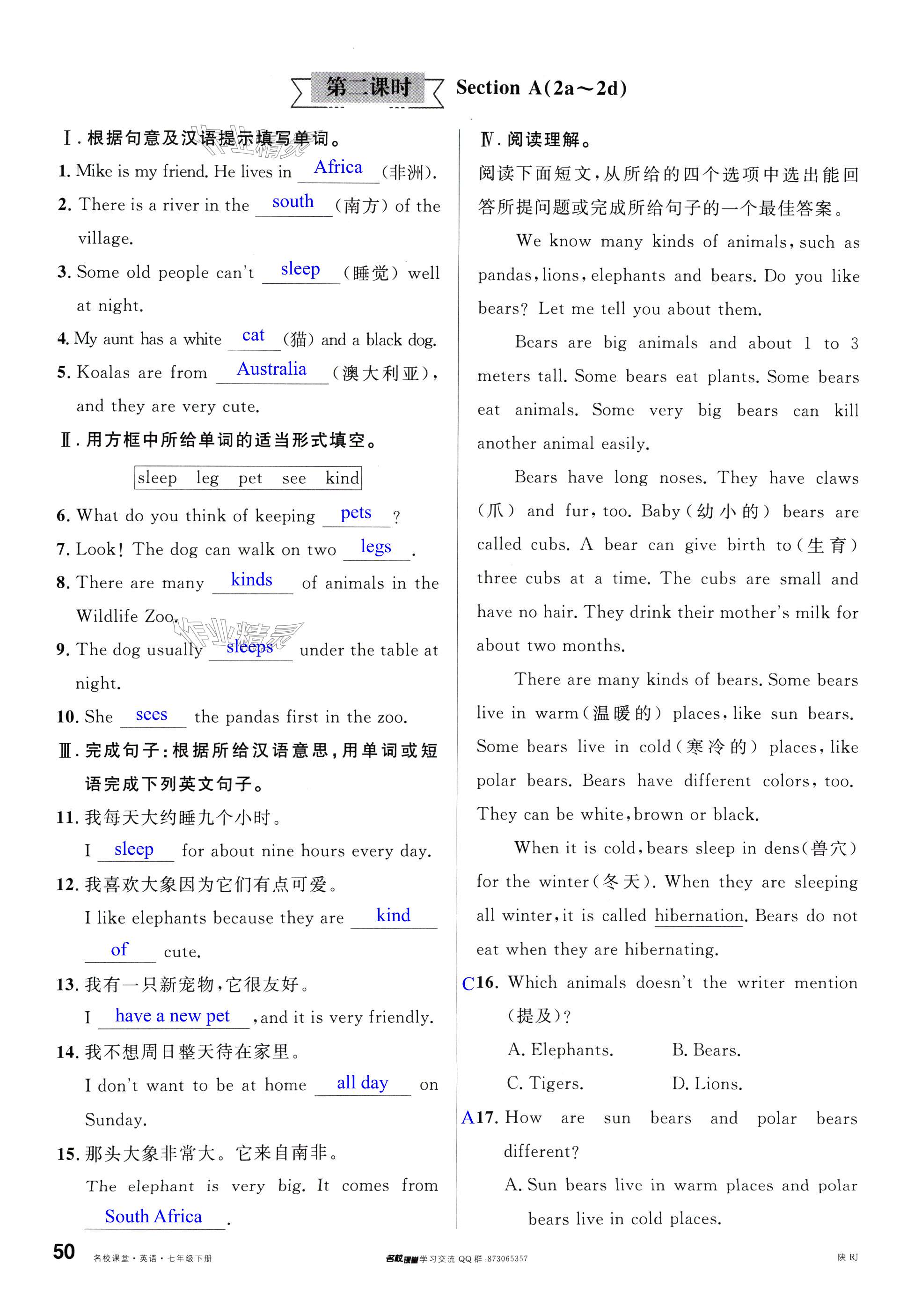 注:目前有些书本章节名称可能整理的还不是很完善,但都是按照顺序排列的,请同学们按照顺序仔细查找。练习册 2024年名校课堂七年级英语下册人教版陕西专版 答案主要是用来给同学们做完题方便对答案用的,请勿直接抄袭。