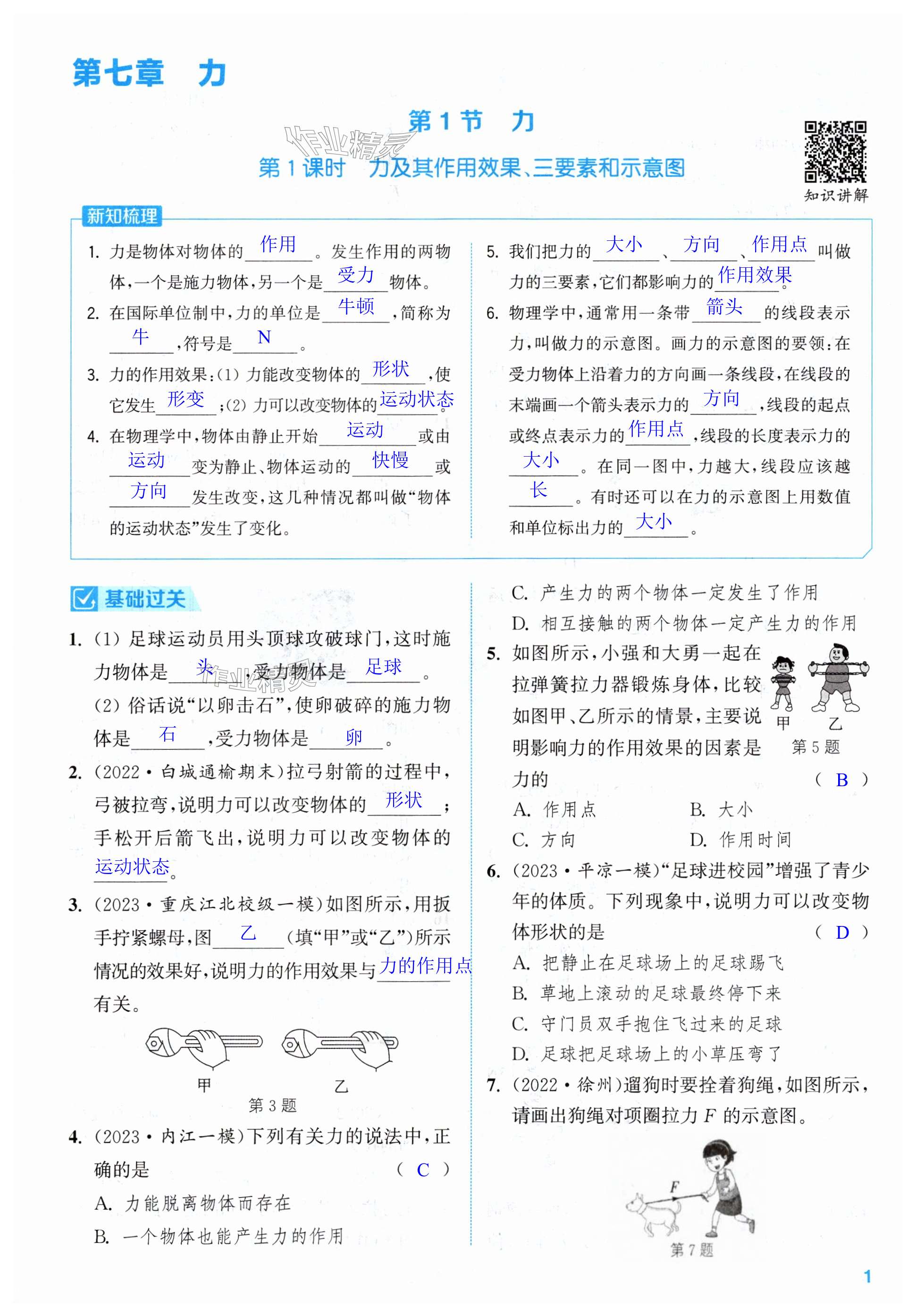 注:目前有些书本章节名称可能整理的还不是很完善,但都是按照顺序排列的,请同学们按照顺序仔细查找。练习册 2024年通城学典课时作业本八年级物理下册人教版 答案主要是用来给同学们做完题方便对答案用的,请勿直接抄袭。