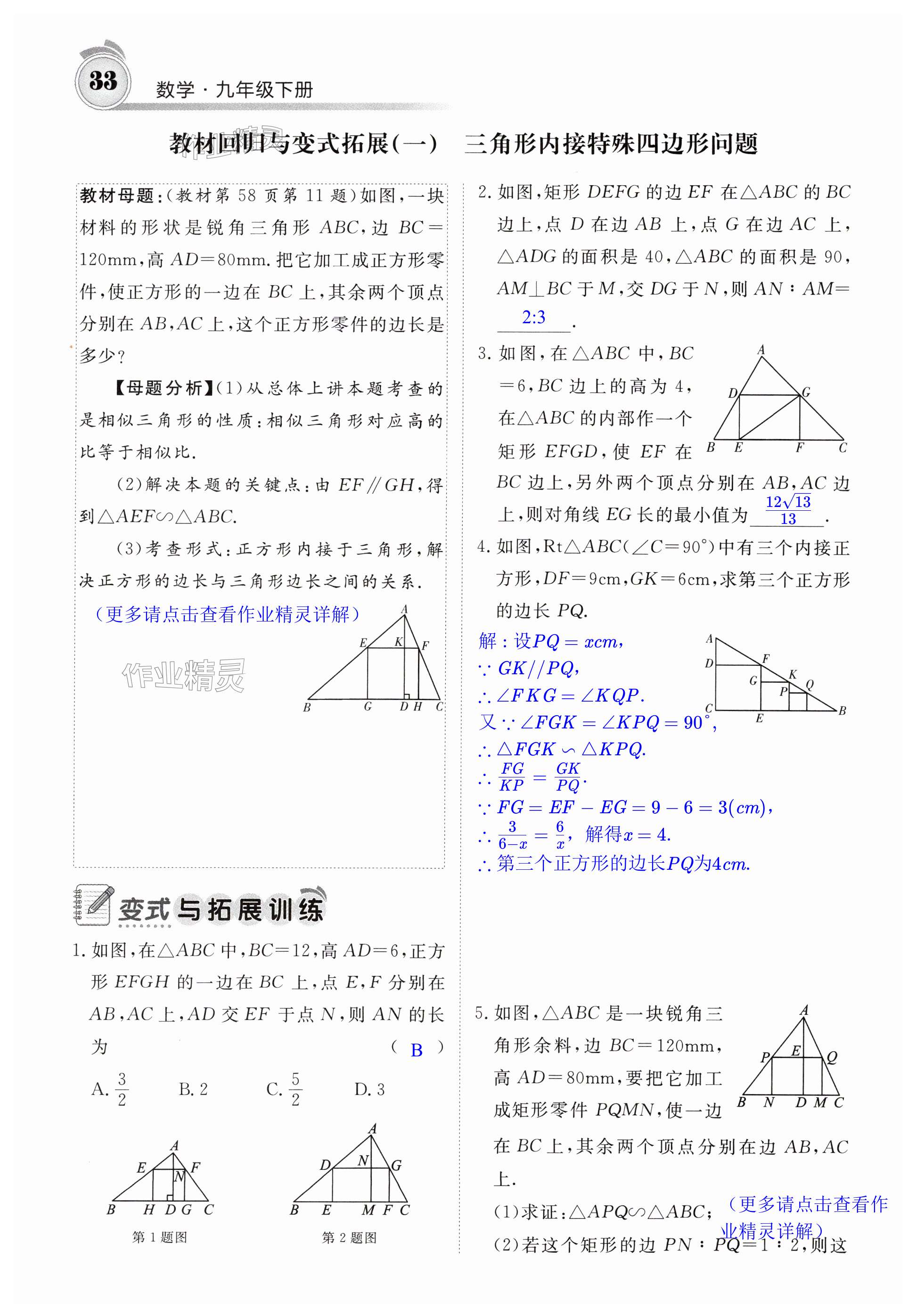 2024年名校课堂内外九年级数学下册人教版