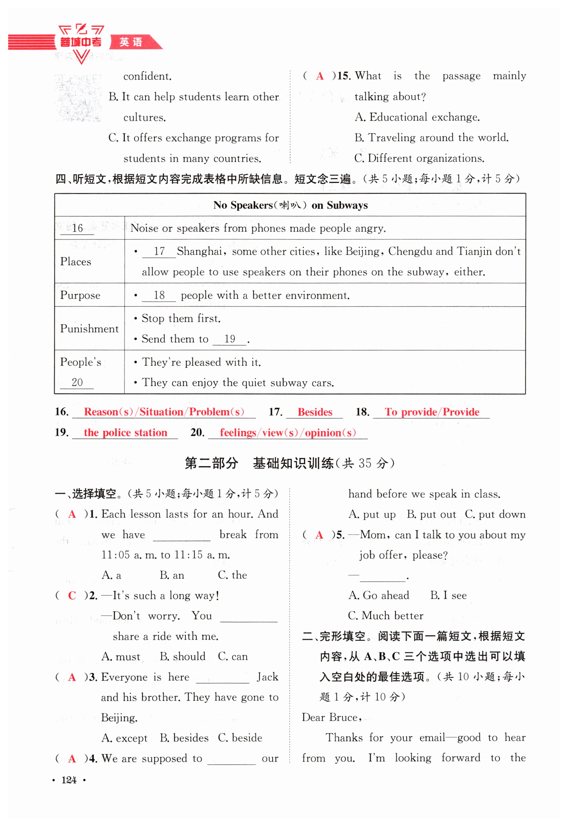 注:目前有些书本章节名称可能整理的还不是很完善,但都是按照顺序排列的,请同学们按照顺序仔细查找。练习册 2024年蓉城中考英语 答案主要是用来给同学们做完题方便对答案用的,请勿直接抄袭。