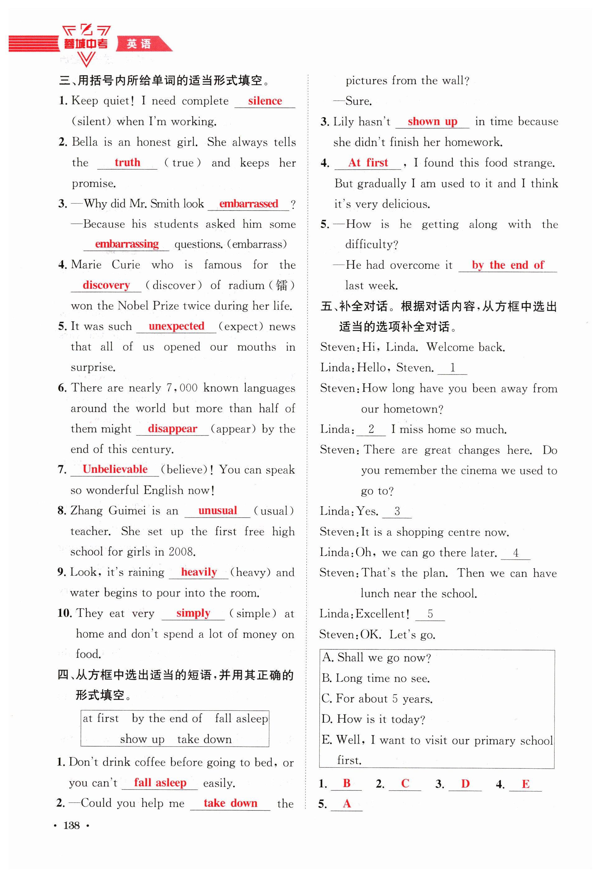 注:目前有些书本章节名称可能整理的还不是很完善,但都是按照顺序排列的,请同学们按照顺序仔细查找。练习册 2024年蓉城中考英语 答案主要是用来给同学们做完题方便对答案用的,请勿直接抄袭。
