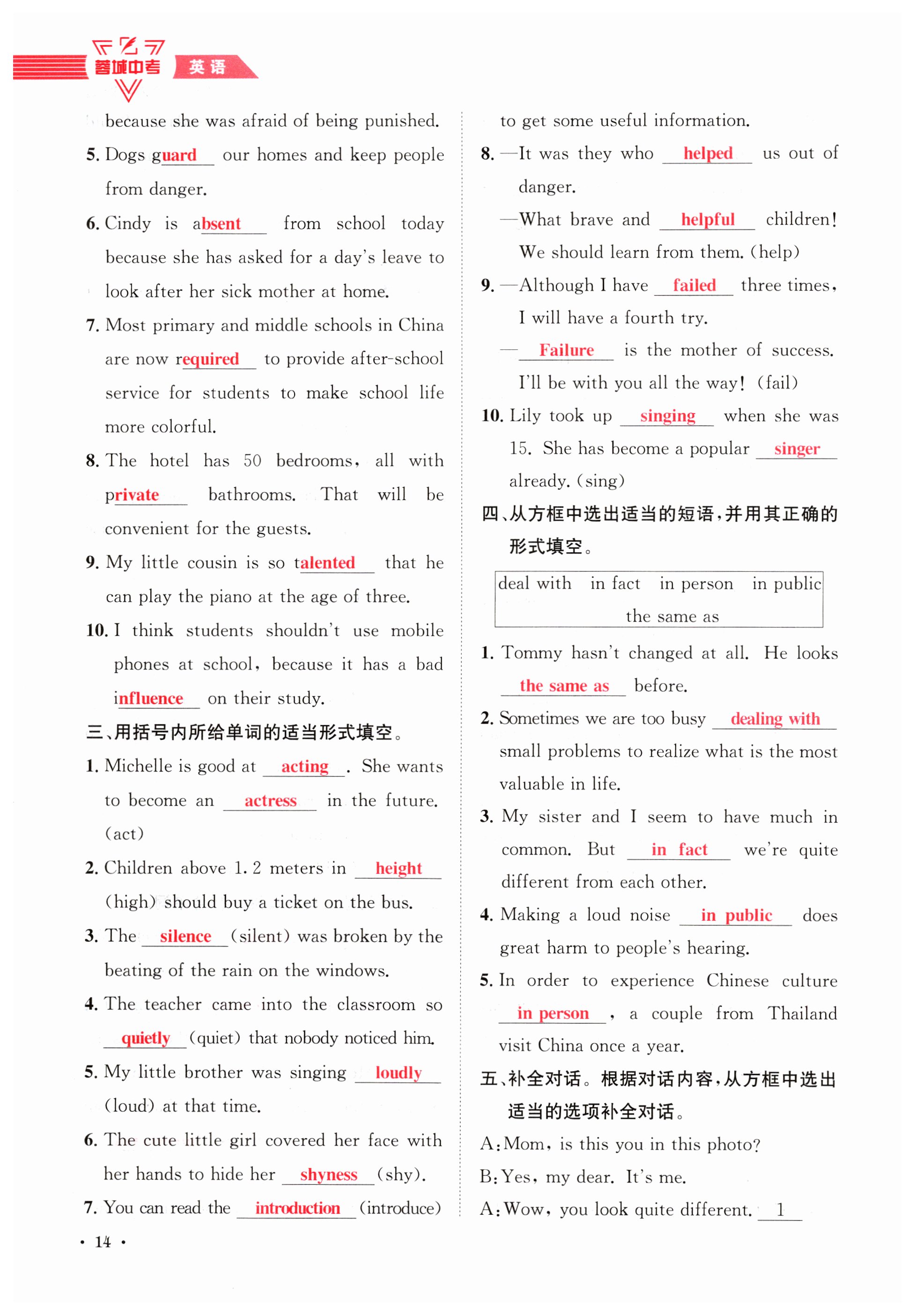 注:目前有些书本章节名称可能整理的还不是很完善,但都是按照顺序排列的,请同学们按照顺序仔细查找。练习册 2024年蓉城中考英语 答案主要是用来给同学们做完题方便对答案用的,请勿直接抄袭。