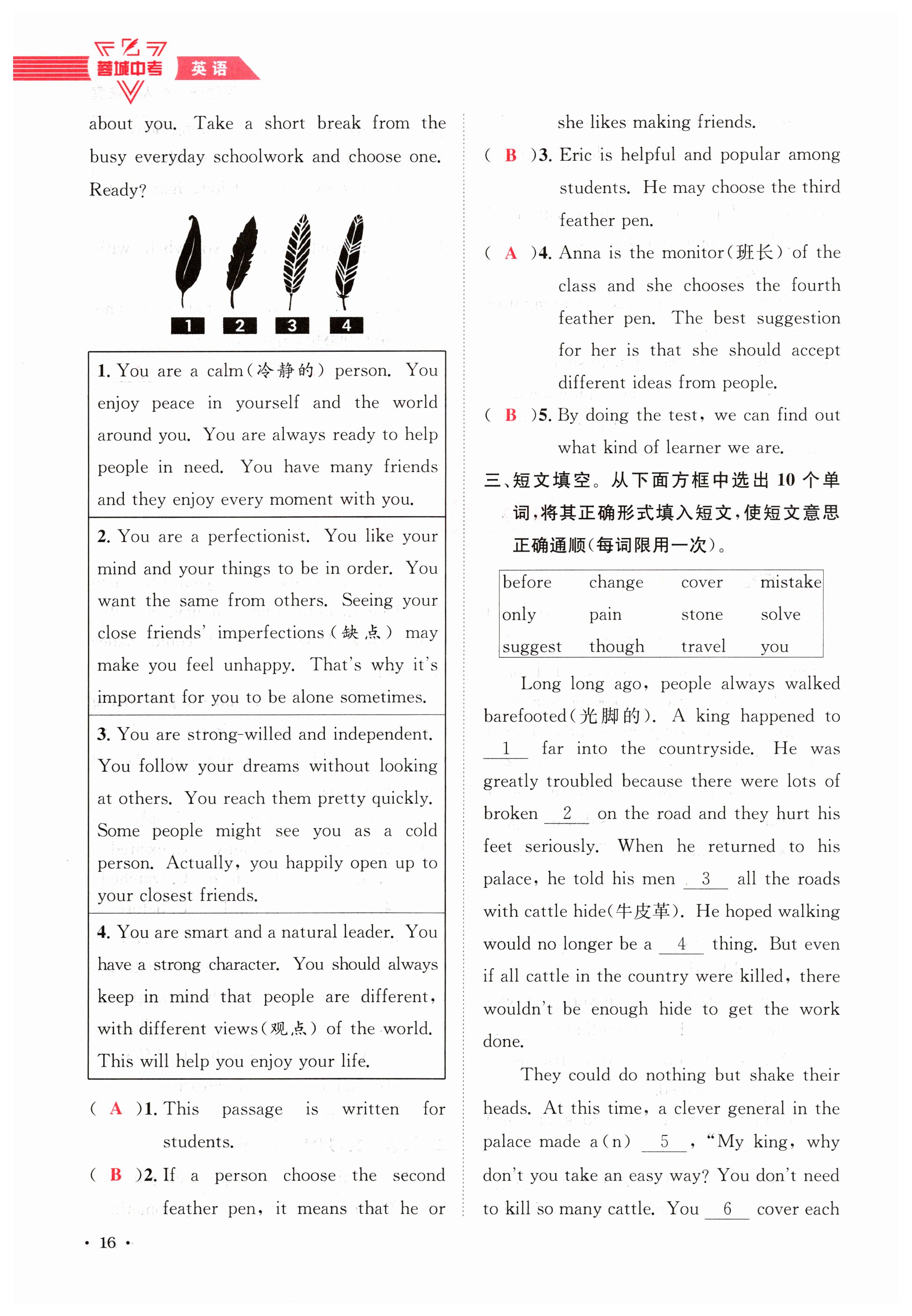 注:目前有些书本章节名称可能整理的还不是很完善,但都是按照顺序排列的,请同学们按照顺序仔细查找。练习册 2024年蓉城中考英语 答案主要是用来给同学们做完题方便对答案用的,请勿直接抄袭。