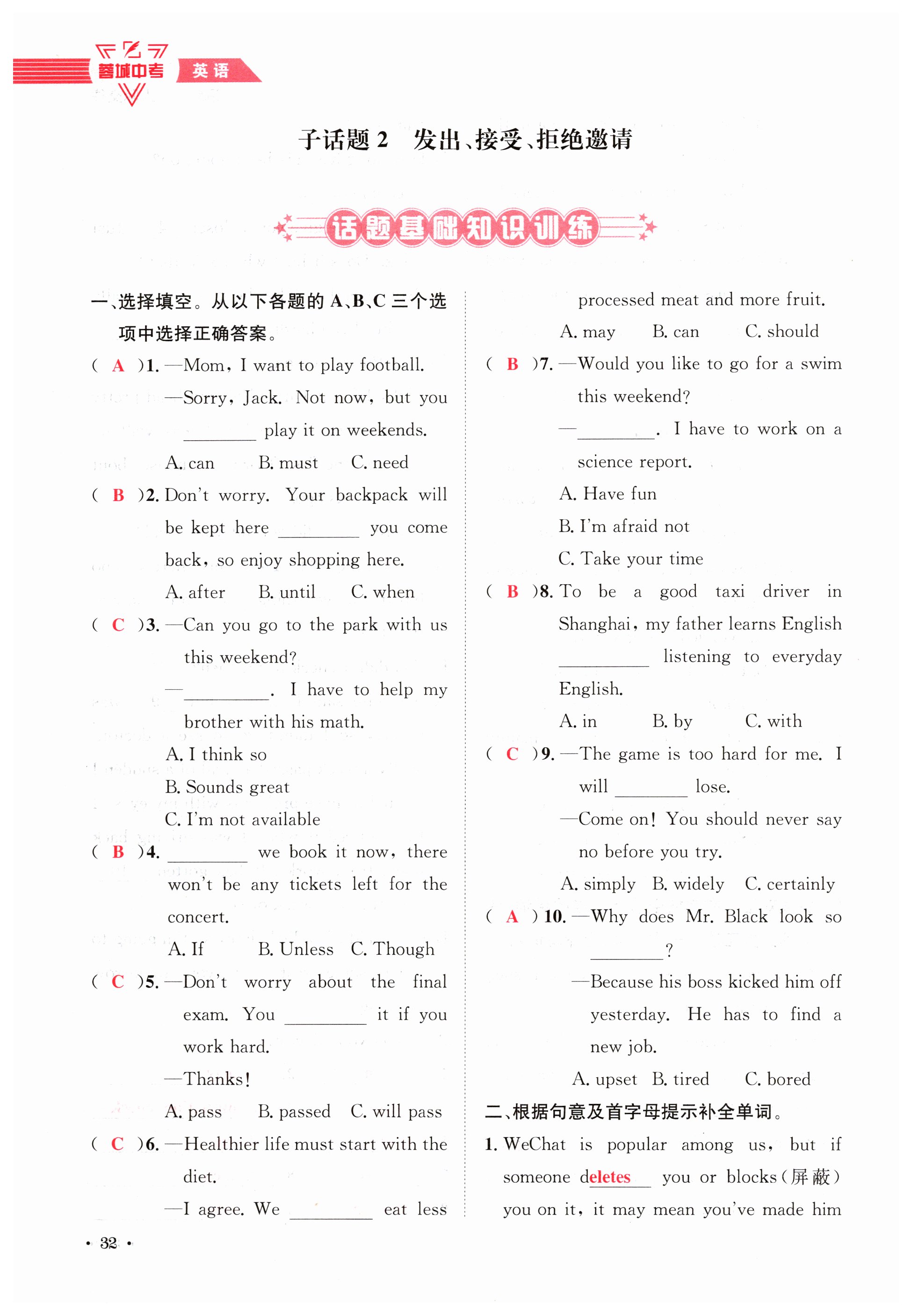 注:目前有些书本章节名称可能整理的还不是很完善,但都是按照顺序排列的,请同学们按照顺序仔细查找。练习册 2024年蓉城中考英语 答案主要是用来给同学们做完题方便对答案用的,请勿直接抄袭。