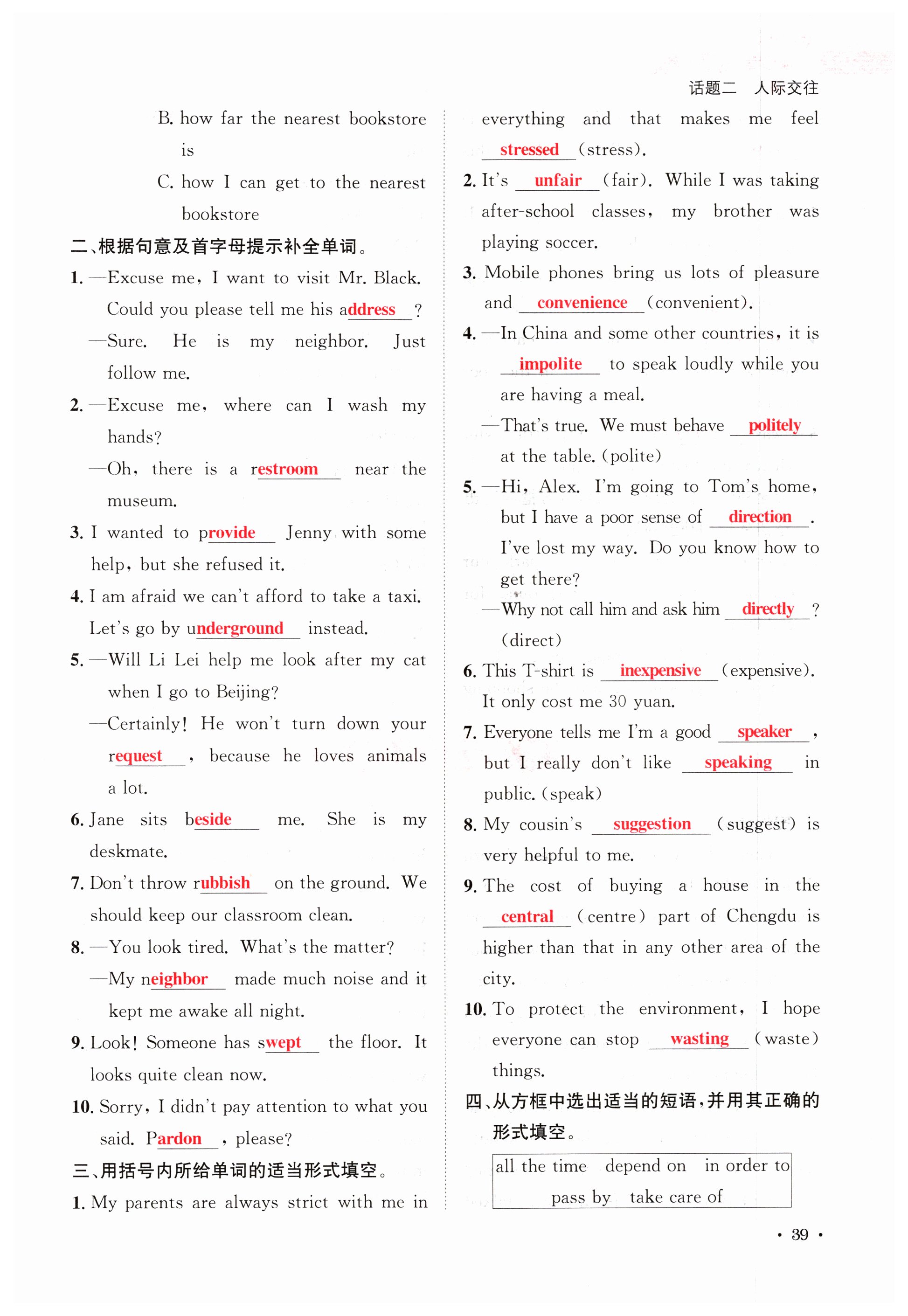 注:目前有些书本章节名称可能整理的还不是很完善,但都是按照顺序排列的,请同学们按照顺序仔细查找。练习册 2024年蓉城中考英语 答案主要是用来给同学们做完题方便对答案用的,请勿直接抄袭。