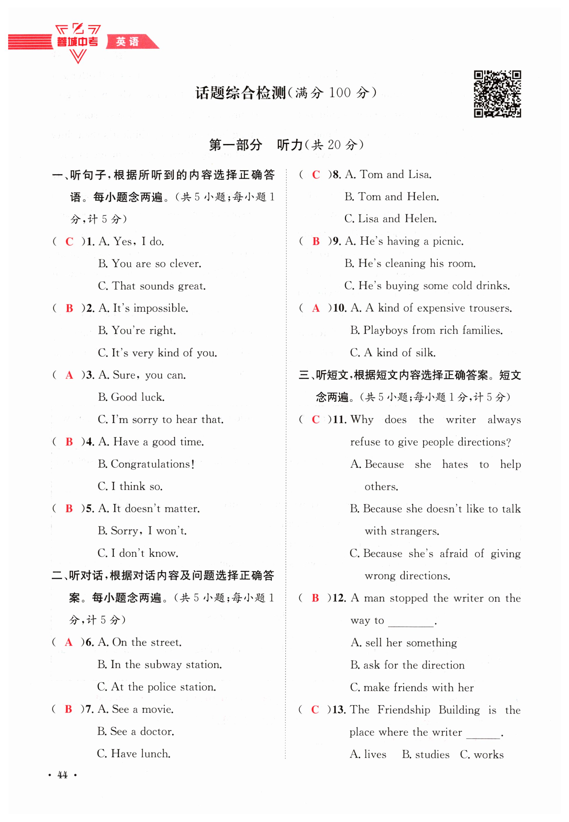 注:目前有些书本章节名称可能整理的还不是很完善,但都是按照顺序排列的,请同学们按照顺序仔细查找。练习册 2024年蓉城中考英语 答案主要是用来给同学们做完题方便对答案用的,请勿直接抄袭。