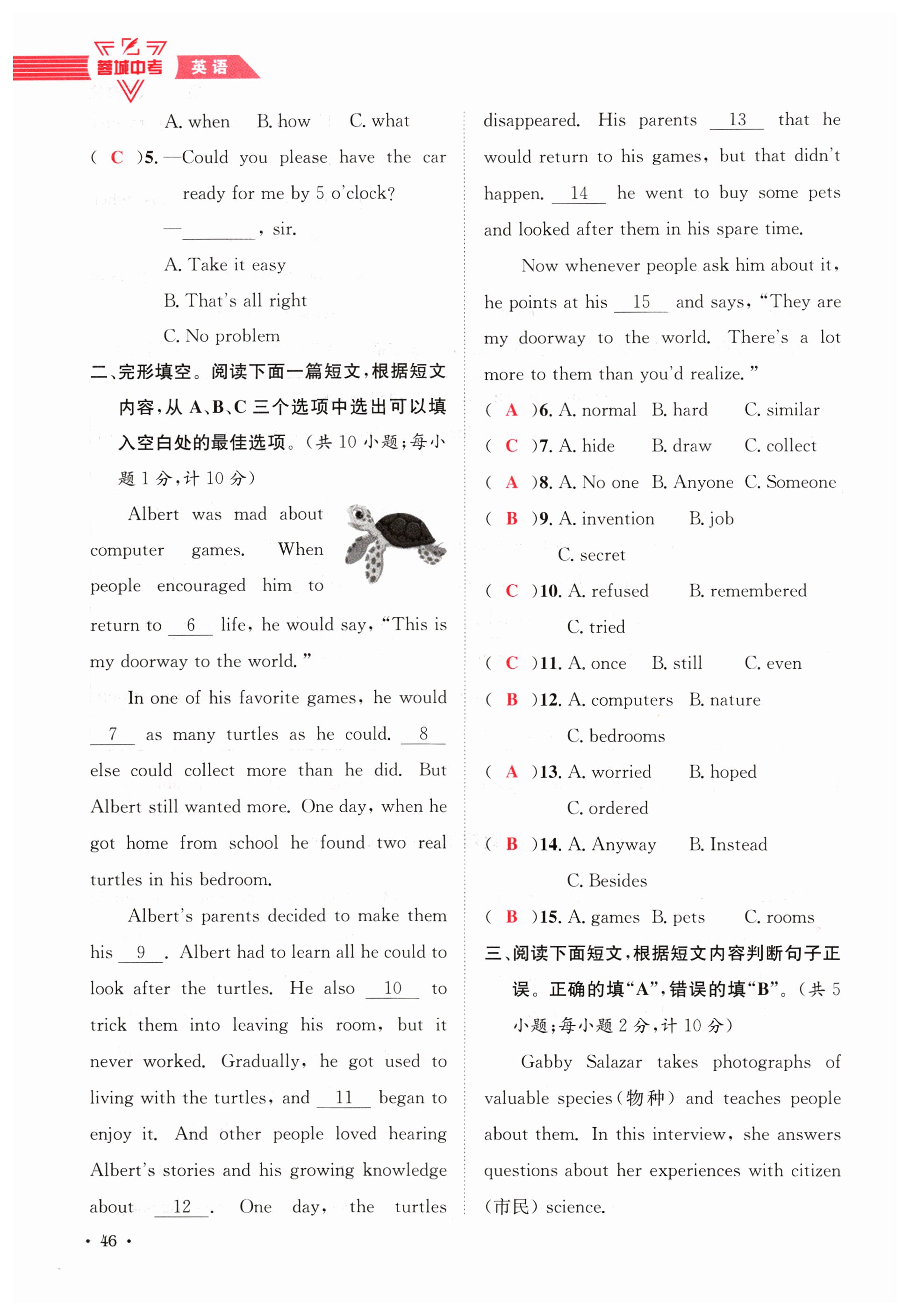 注:目前有些书本章节名称可能整理的还不是很完善,但都是按照顺序排列的,请同学们按照顺序仔细查找。练习册 2024年蓉城中考英语 答案主要是用来给同学们做完题方便对答案用的,请勿直接抄袭。