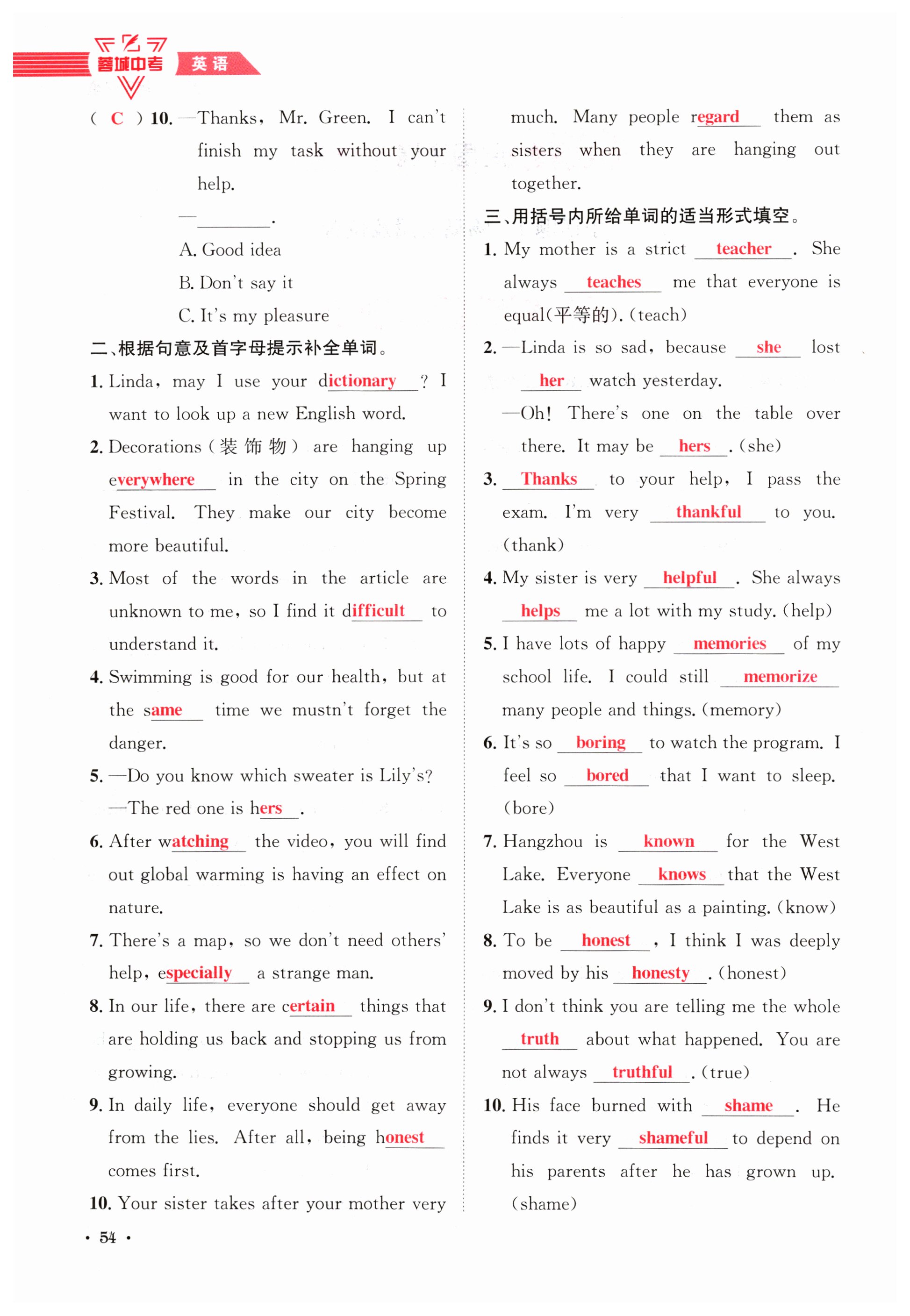 注:目前有些书本章节名称可能整理的还不是很完善,但都是按照顺序排列的,请同学们按照顺序仔细查找。练习册 2024年蓉城中考英语 答案主要是用来给同学们做完题方便对答案用的,请勿直接抄袭。