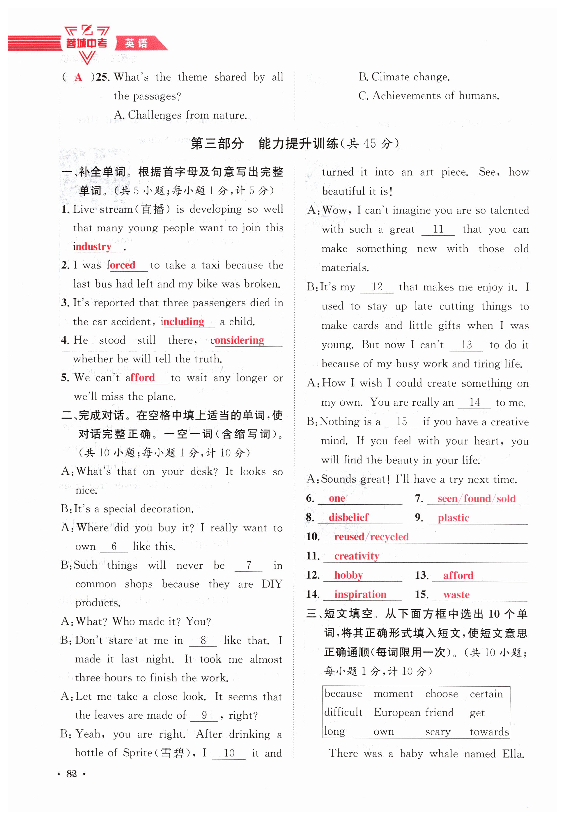 注:目前有些书本章节名称可能整理的还不是很完善,但都是按照顺序排列的,请同学们按照顺序仔细查找。练习册 2024年蓉城中考英语 答案主要是用来给同学们做完题方便对答案用的,请勿直接抄袭。