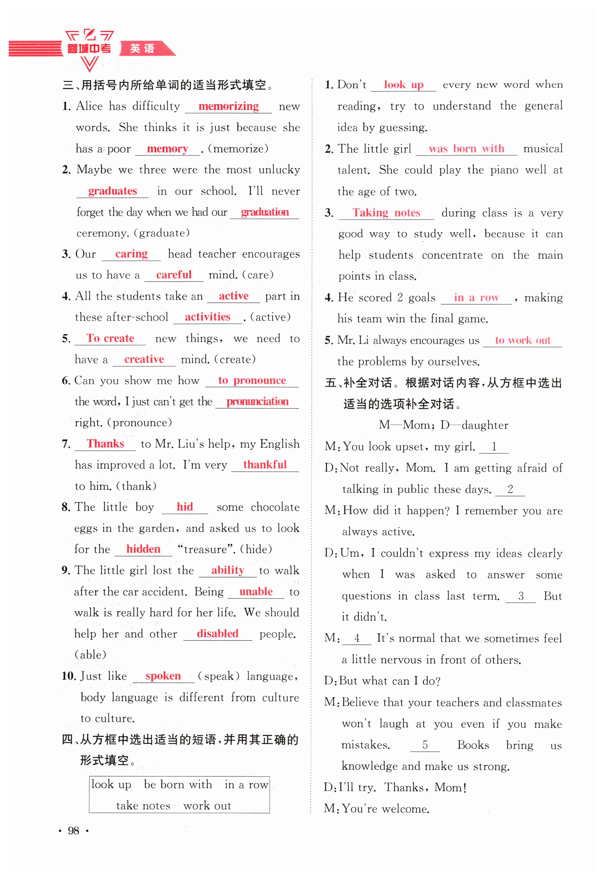 注:目前有些书本章节名称可能整理的还不是很完善,但都是按照顺序排列的,请同学们按照顺序仔细查找。练习册 2024年蓉城中考英语 答案主要是用来给同学们做完题方便对答案用的,请勿直接抄袭。