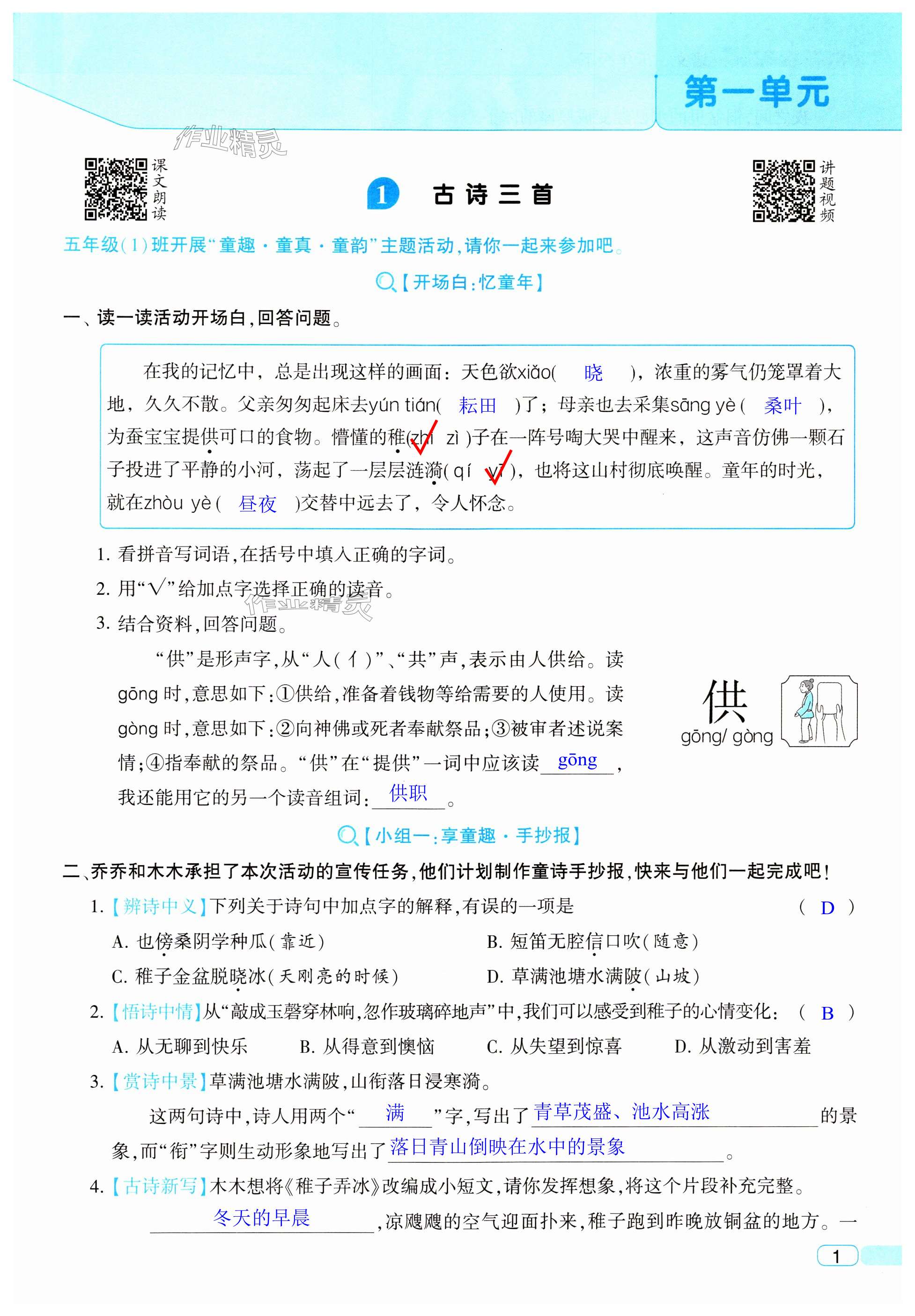 注:目前有些书本章节名称可能整理的还不是很完善,但都是按照顺序排列的,请同学们按照顺序仔细查找。练习册 2024年经纶学典提高班五年级语文下册人教版 答案主要是用来给同学们做完题方便对答案用的,请勿直接抄袭。