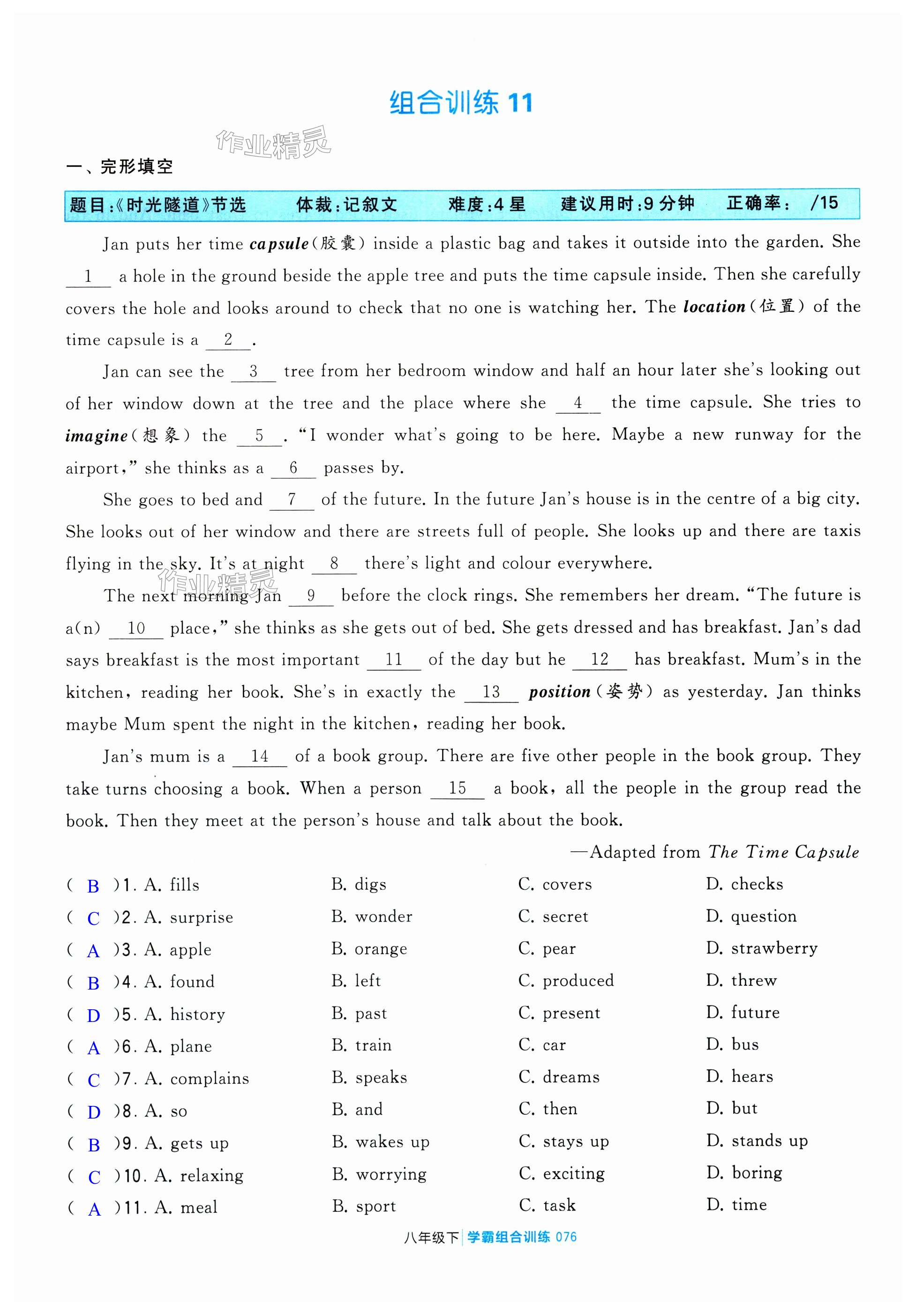 注:目前有些书本章节名称可能整理的还不是很完善,但都是按照顺序排列的,请同学们按照顺序仔细查找。练习册 2024年学霸组合训练八年级英语下册译林版 答案主要是用来给同学们做完题方便对答案用的,请勿直接抄袭。