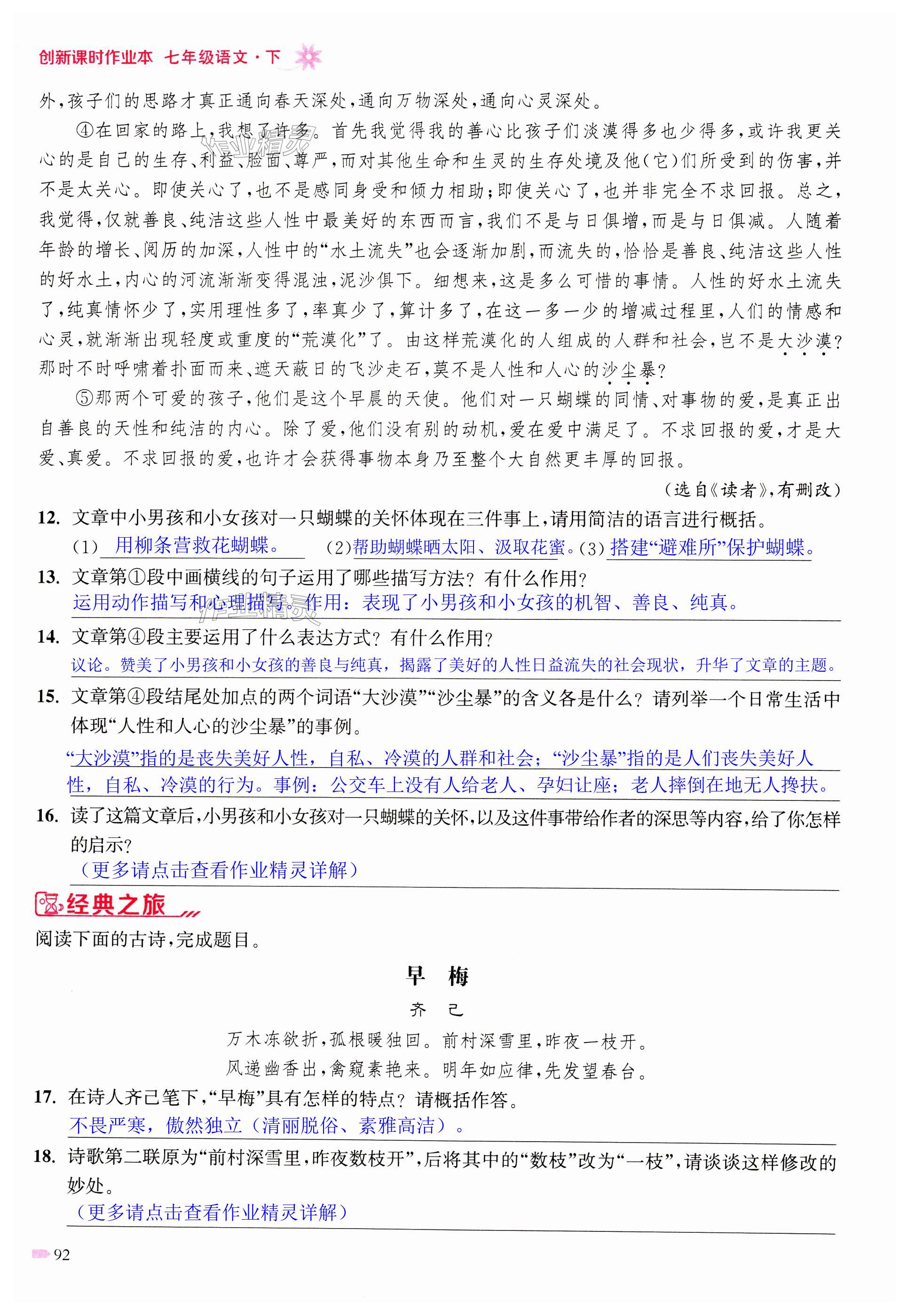 注:目前有些书本章节名称可能整理的还不是很完善,但都是按照顺序排列的,请同学们按照顺序仔细查找。练习册 2024年创新课时作业本七年级语文下册人教版 答案主要是用来给同学们做完题方便对答案用的,请勿直接抄袭。