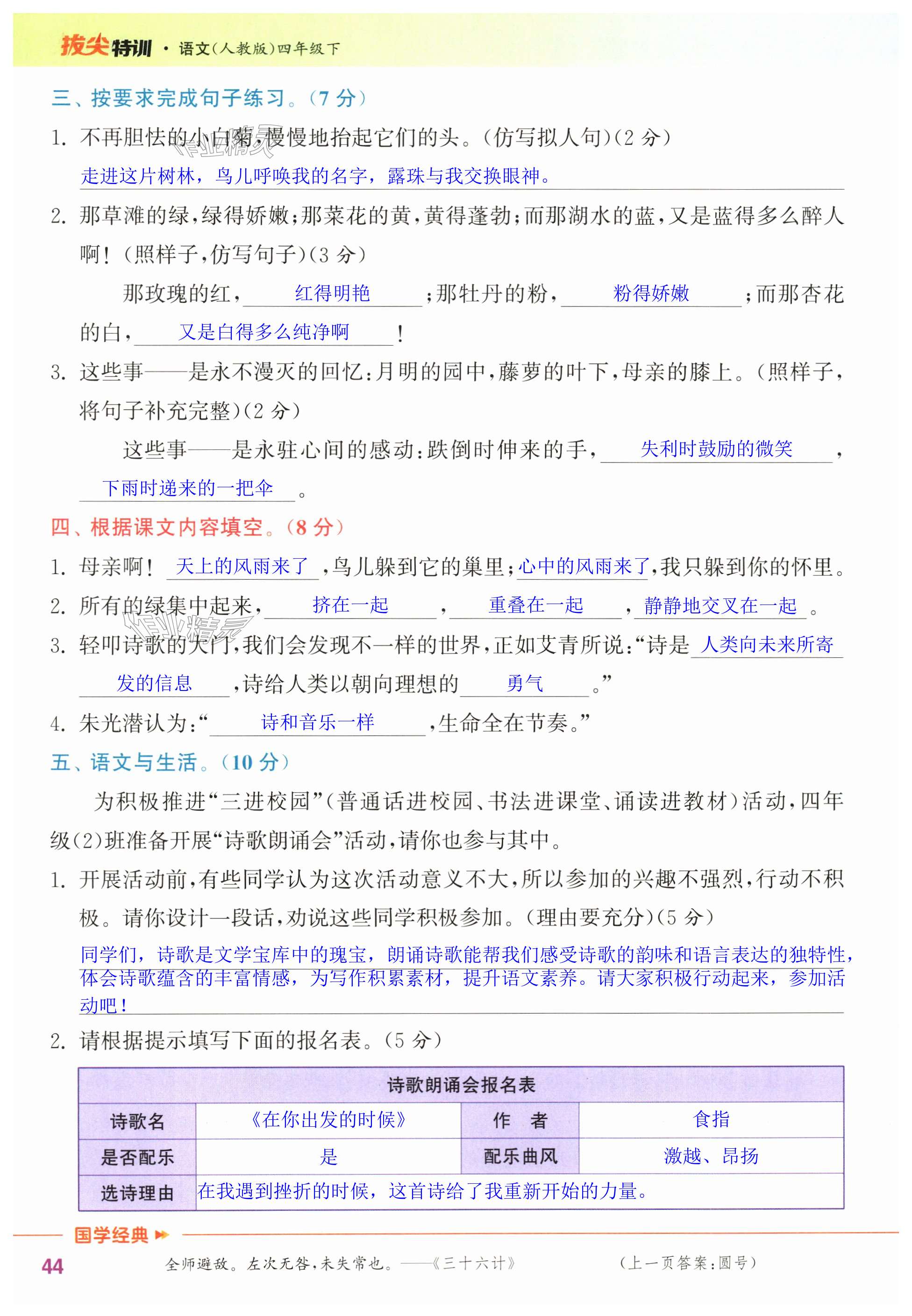 注:目前有些书本章节名称可能整理的还不是很完善,但都是按照顺序排列的,请同学们按照顺序仔细查找。练习册 2024年拔尖特训四年级语文下册人教版 答案主要是用来给同学们做完题方便对答案用的,请勿直接抄袭。