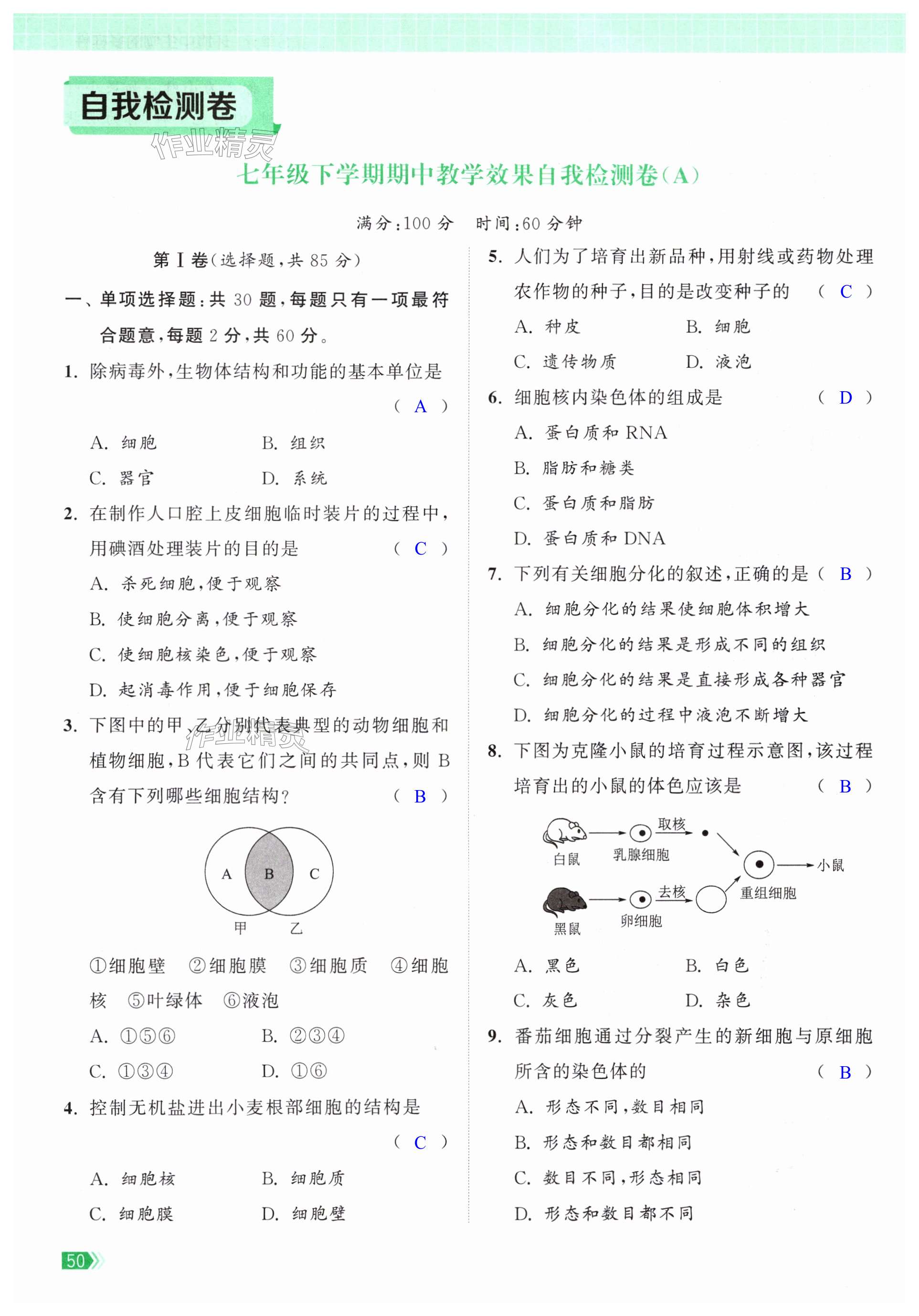 注:目前有些书本章节名称可能整理的还不是很完善,但都是按照顺序排列的,请同学们按照顺序仔细查找。练习册 2024年课时提优计划作业本七年级生物下册苏科版 答案主要是用来给同学们做完题方便对答案用的,请勿直接抄袭。
