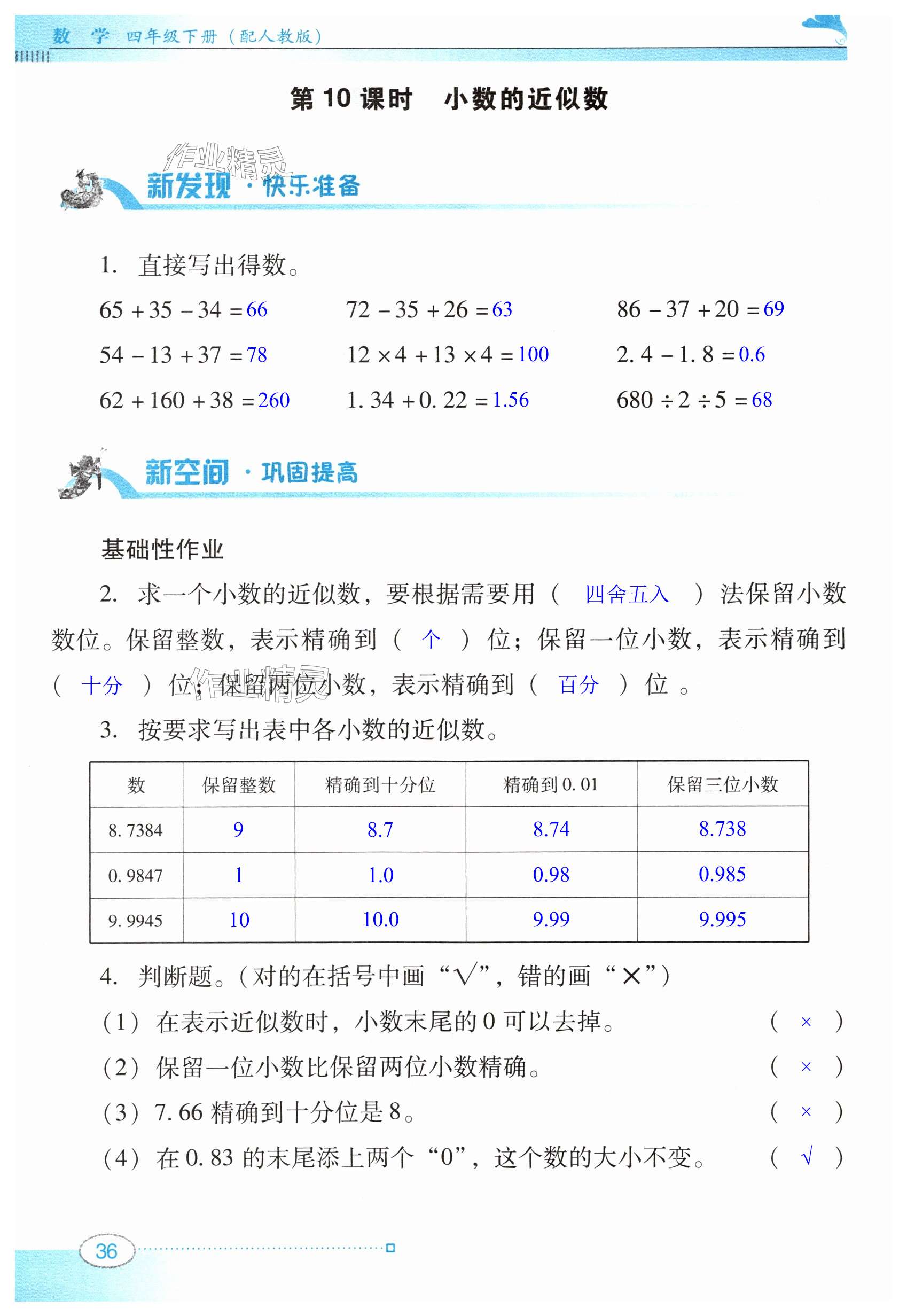 注:目前有些书本章节名称可能整理的还不是很完善,但都是按照顺序排列的,请同学们按照顺序仔细查找。练习册 2024年南方新课堂金牌学案四年级数学下册人教版 答案主要是用来给同学们做完题方便对答案用的,请勿直接抄袭。