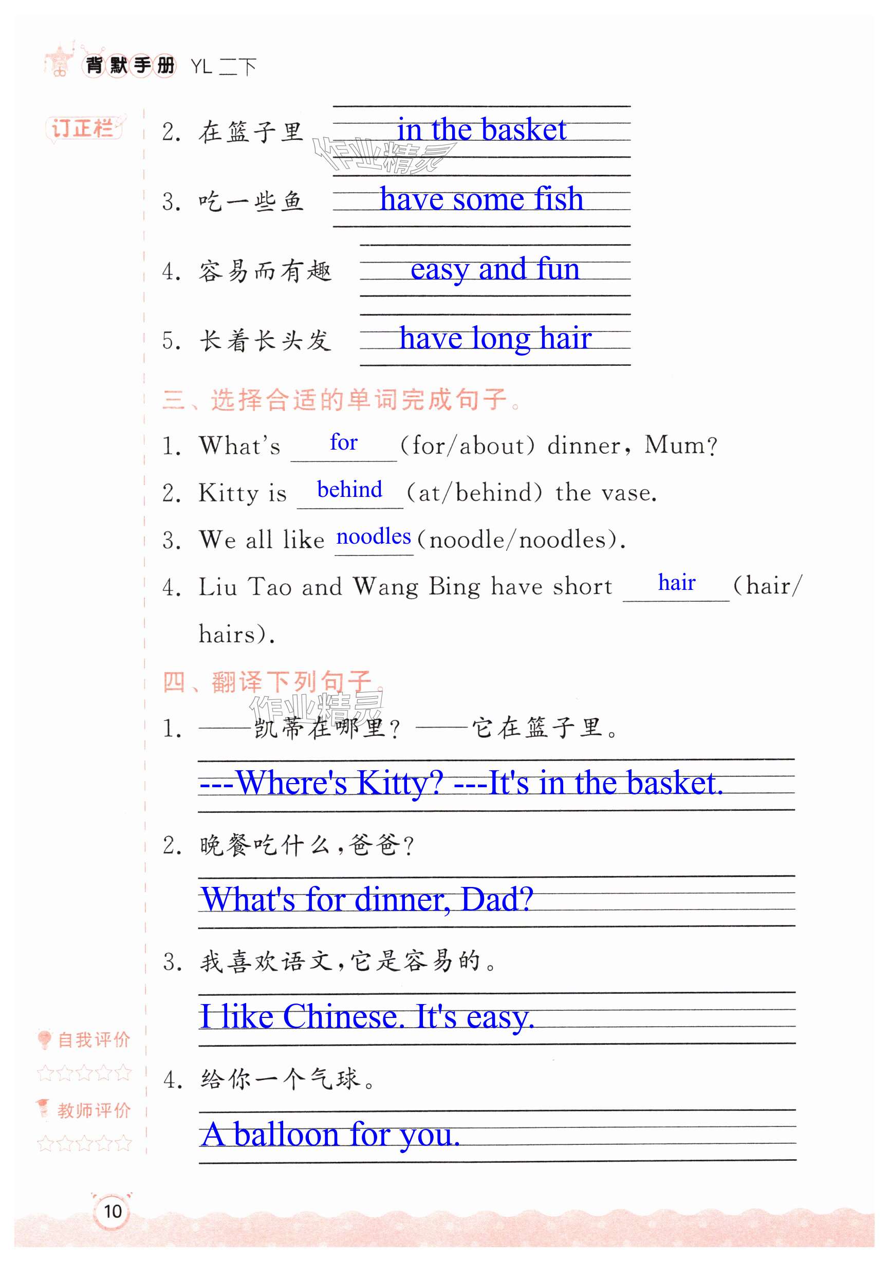 注:目前有些书本章节名称可能整理的还不是很完善,但都是按照顺序排列的,请同学们按照顺序仔细查找。练习册 2024年实验班提优训练二年级英语下册译林版 答案主要是用来给同学们做完题方便对答案用的,请勿直接抄袭。