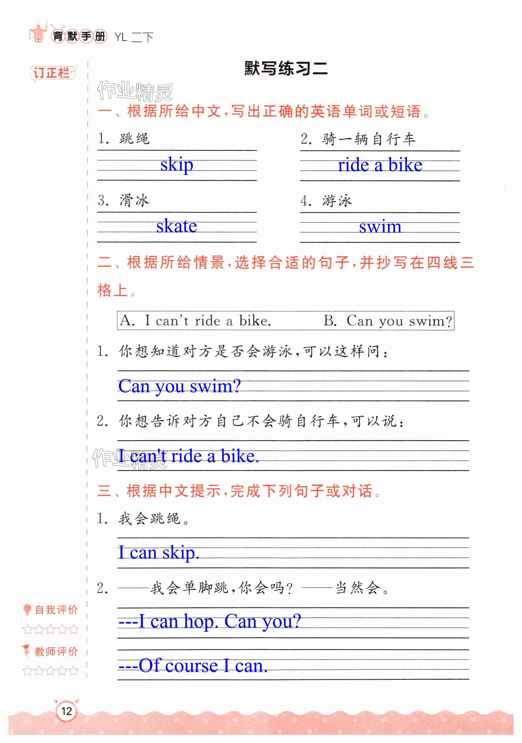 注:目前有些书本章节名称可能整理的还不是很完善,但都是按照顺序排列的,请同学们按照顺序仔细查找。练习册 2024年实验班提优训练二年级英语下册译林版 答案主要是用来给同学们做完题方便对答案用的,请勿直接抄袭。