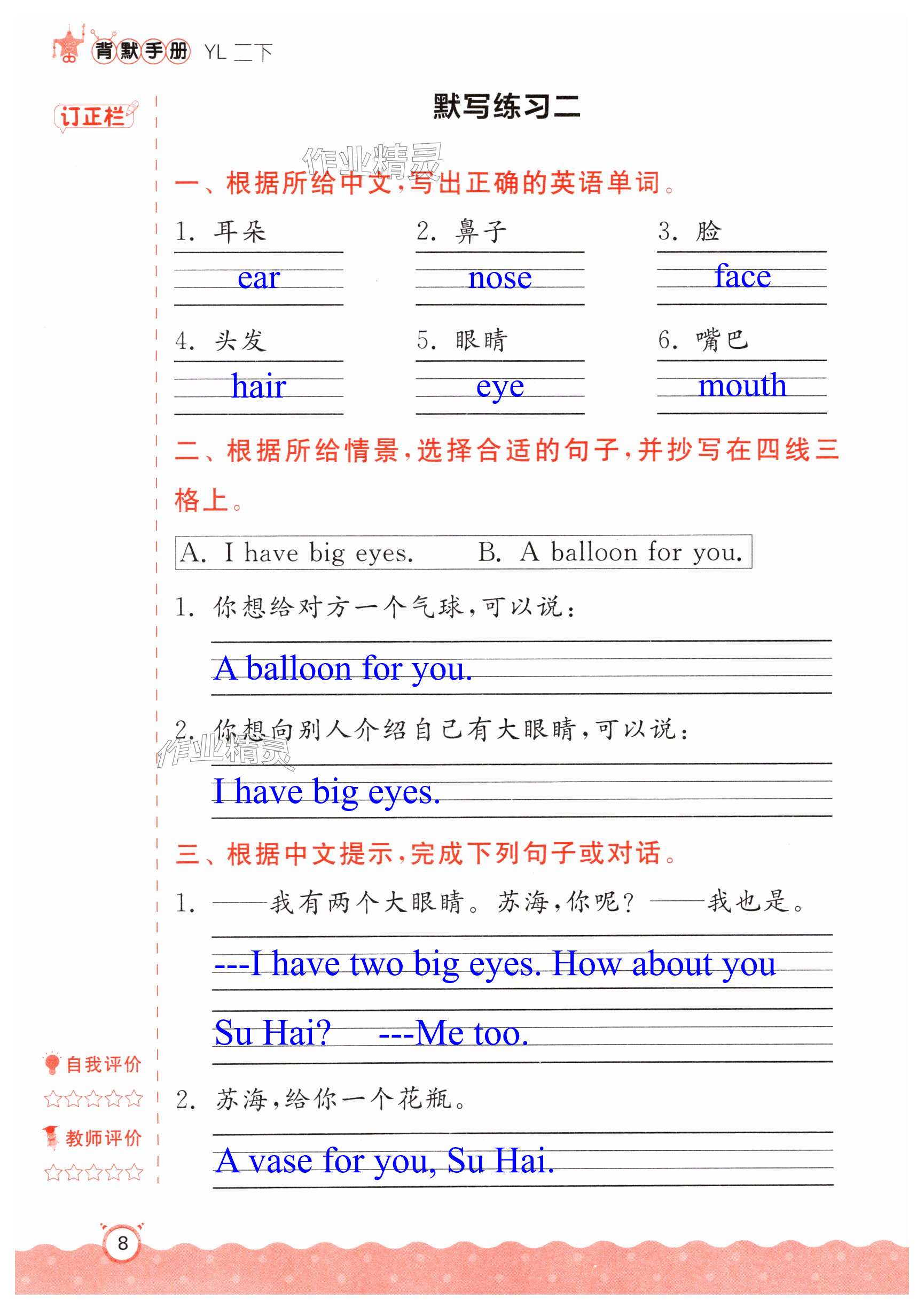注:目前有些书本章节名称可能整理的还不是很完善,但都是按照顺序排列的,请同学们按照顺序仔细查找。练习册 2024年实验班提优训练二年级英语下册译林版 答案主要是用来给同学们做完题方便对答案用的,请勿直接抄袭。
