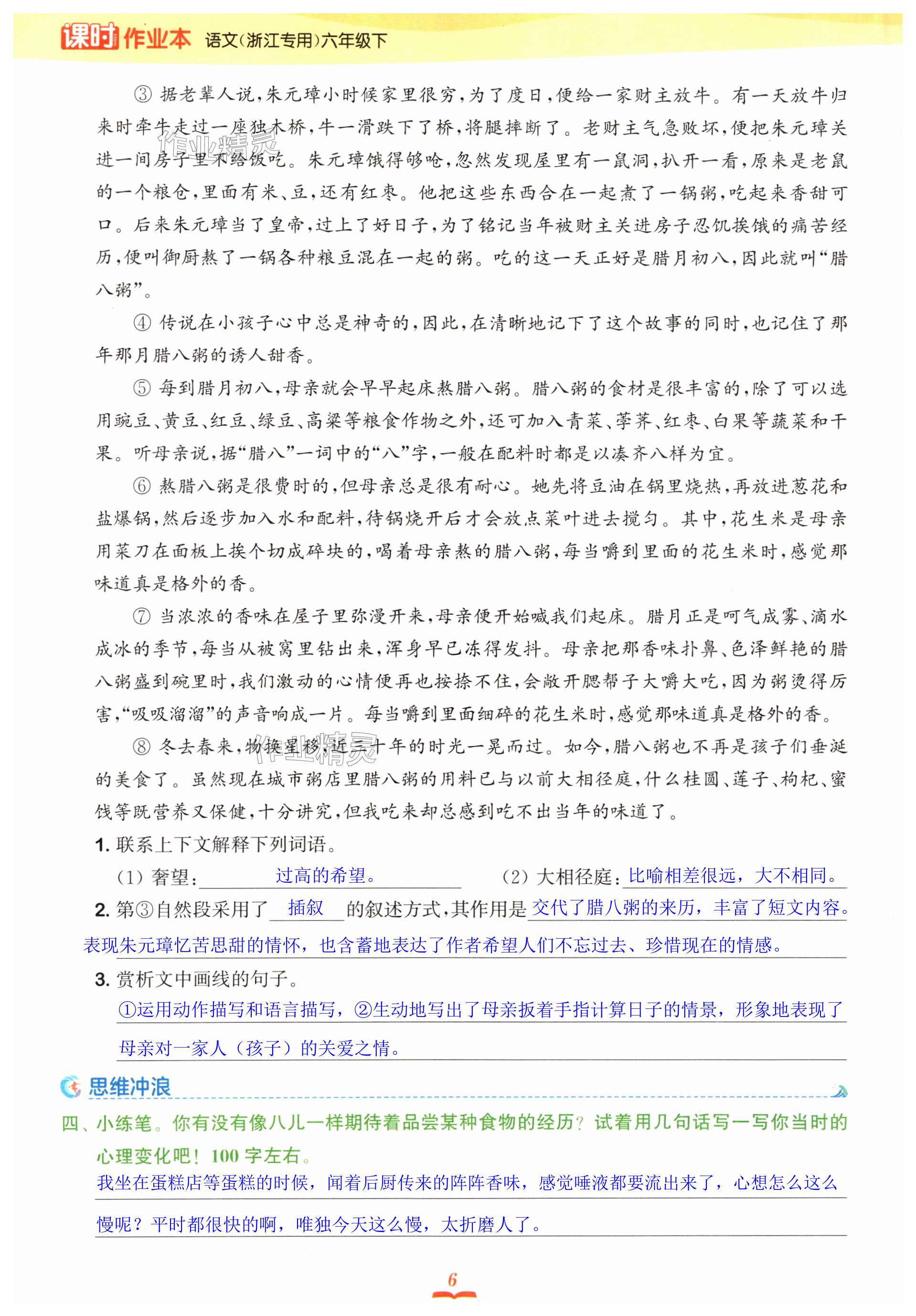 2024年通城学典课时作业本六年级语文下册人教版浙江专版