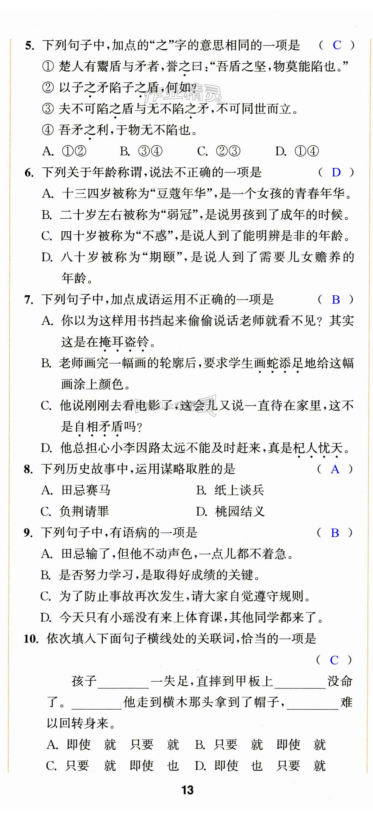 注:目前有些书本章节名称可能整理的还不是很完善,但都是按照顺序排列的,请同学们按照顺序仔细查找。练习册 2024年通城学典课时作业本五年级语文下册人教版浙江专版 答案主要是用来给同学们做完题方便对答案用的,请勿直接抄袭。