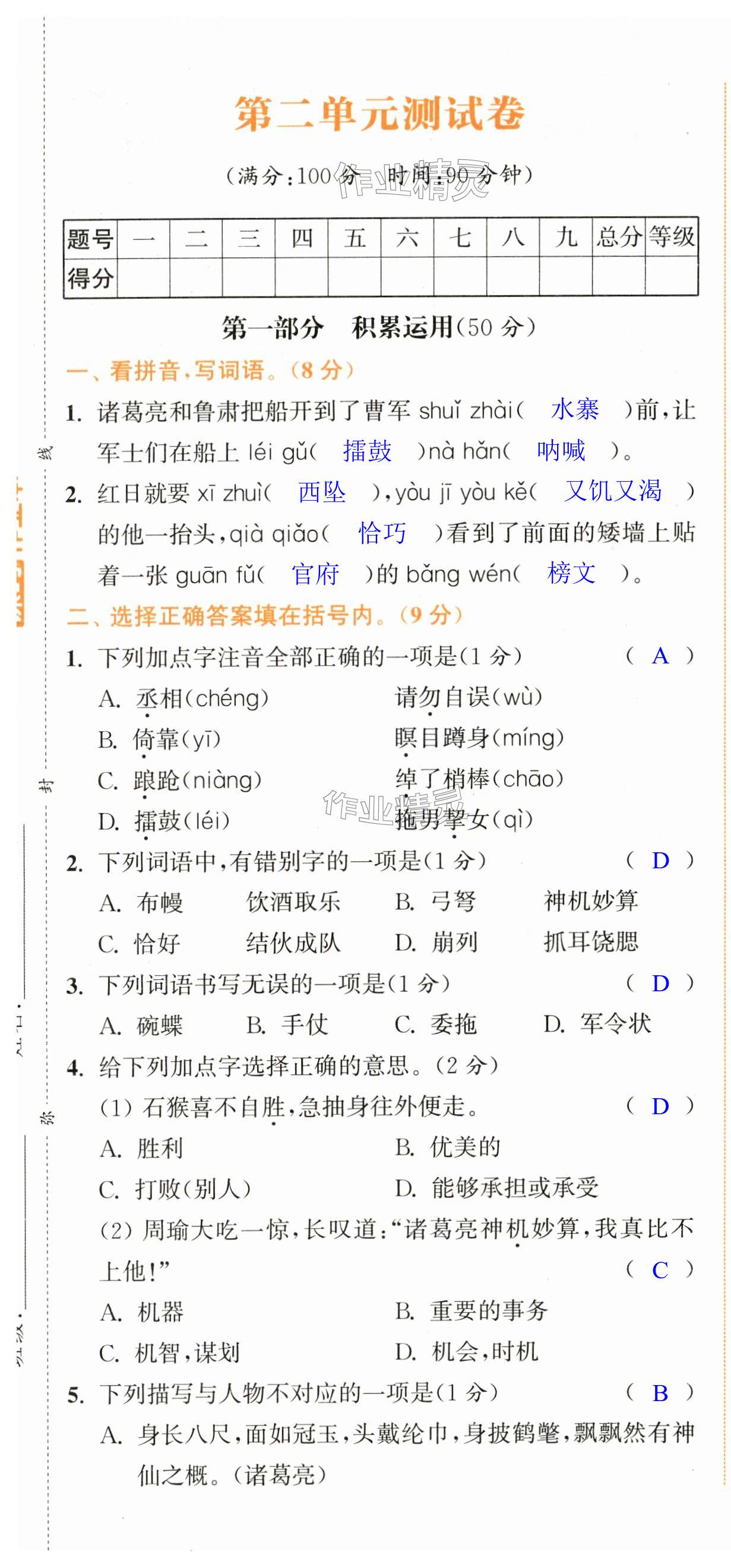 注:目前有些书本章节名称可能整理的还不是很完善,但都是按照顺序排列的,请同学们按照顺序仔细查找。练习册 2024年通城学典课时作业本五年级语文下册人教版浙江专版 答案主要是用来给同学们做完题方便对答案用的,请勿直接抄袭。
