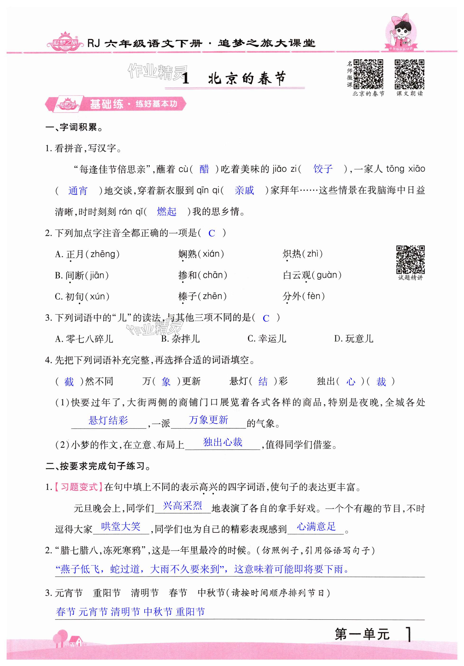 注:目前有些书本章节名称可能整理的还不是很完善,但都是按照顺序排列的,请同学们按照顺序仔细查找。练习册 2024年追梦之旅大课堂六年级语文下册人教版河南专版 答案主要是用来给同学们做完题方便对答案用的,请勿直接抄袭。