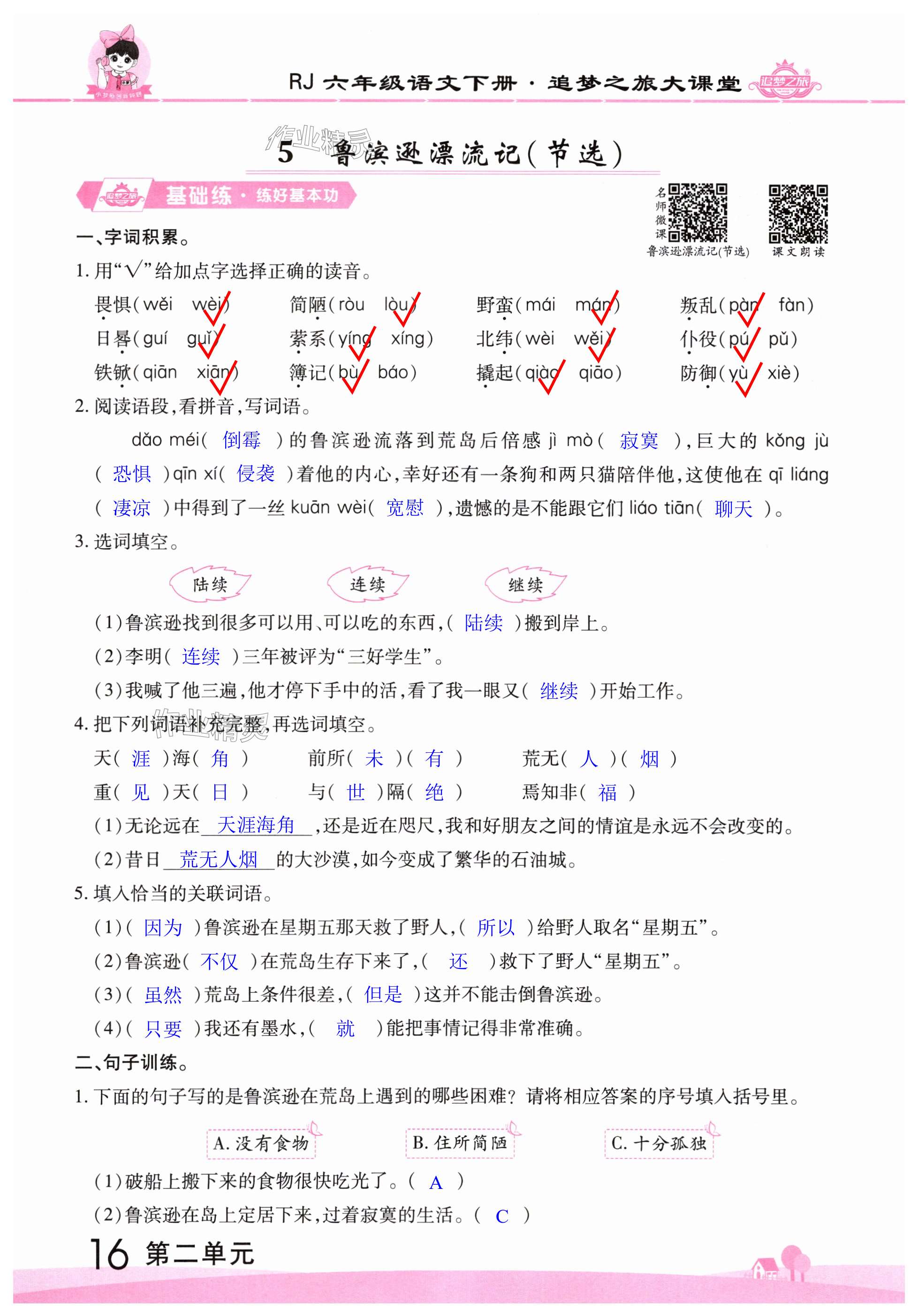 注:目前有些书本章节名称可能整理的还不是很完善,但都是按照顺序排列的,请同学们按照顺序仔细查找。练习册 2024年追梦之旅大课堂六年级语文下册人教版河南专版 答案主要是用来给同学们做完题方便对答案用的,请勿直接抄袭。