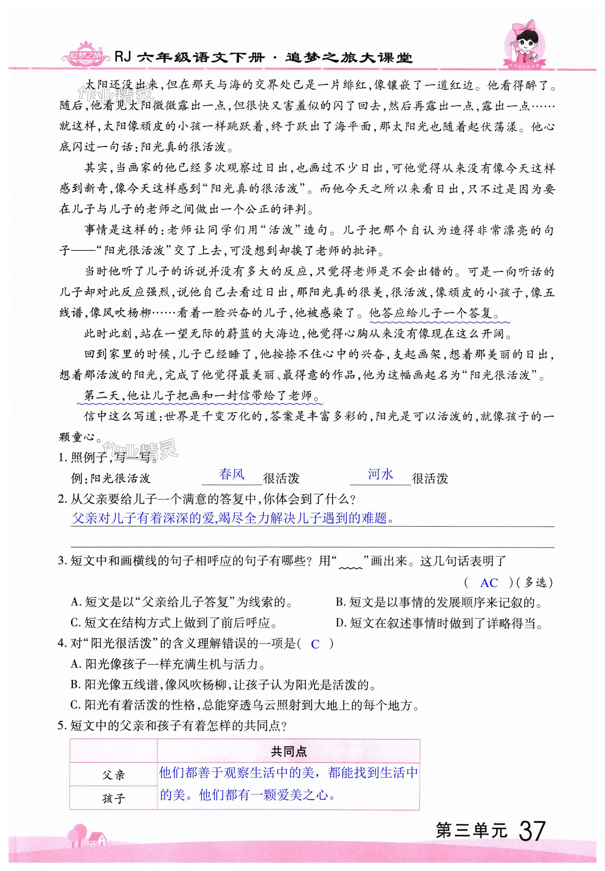注:目前有些书本章节名称可能整理的还不是很完善,但都是按照顺序排列的,请同学们按照顺序仔细查找。练习册 2024年追梦之旅大课堂六年级语文下册人教版河南专版 答案主要是用来给同学们做完题方便对答案用的,请勿直接抄袭。