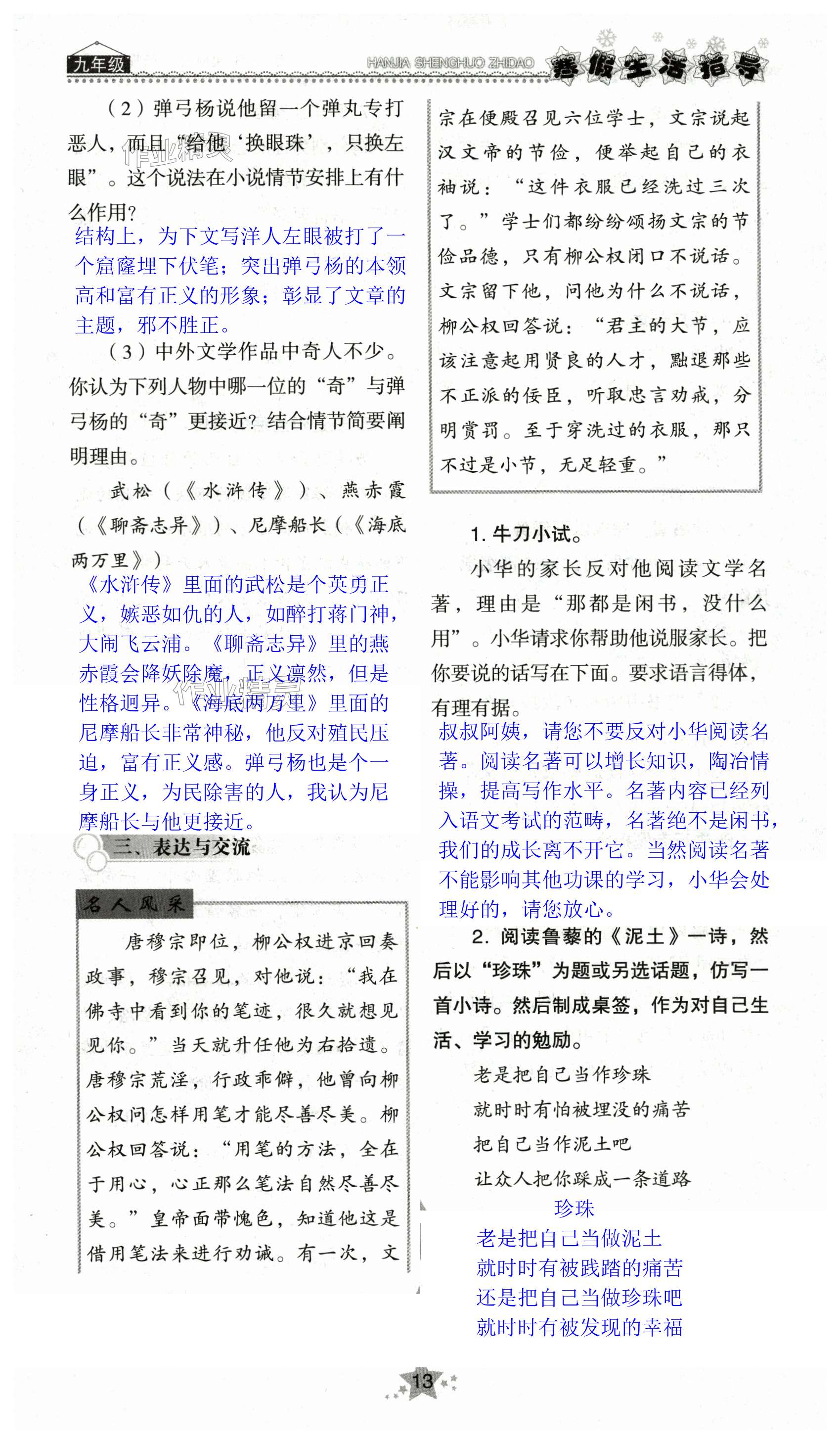 2024年寒假生活指导山东教育出版社九年级