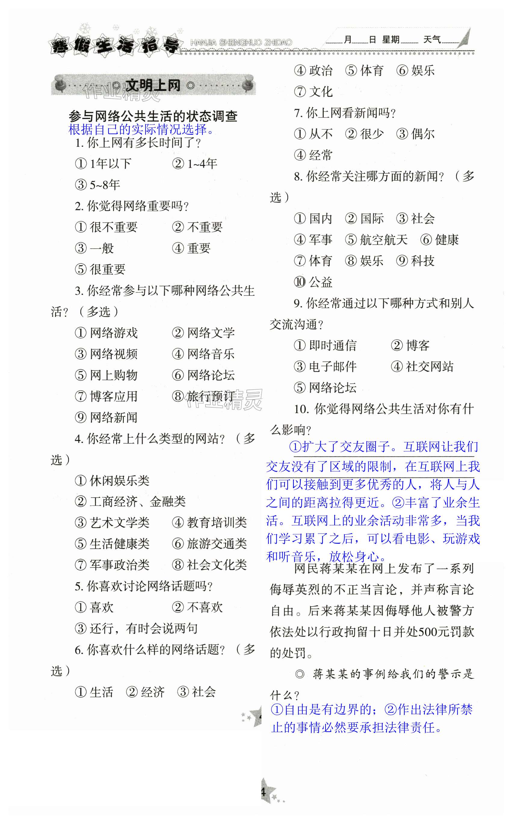 注:目前有些书本章节名称可能整理的还不是很完善,但都是按照顺序排列的,请同学们按照顺序仔细查找。练习册 2024年寒假生活指导山东教育出版社九年级 答案主要是用来给同学们做完题方便对答案用的,请勿直接抄袭。