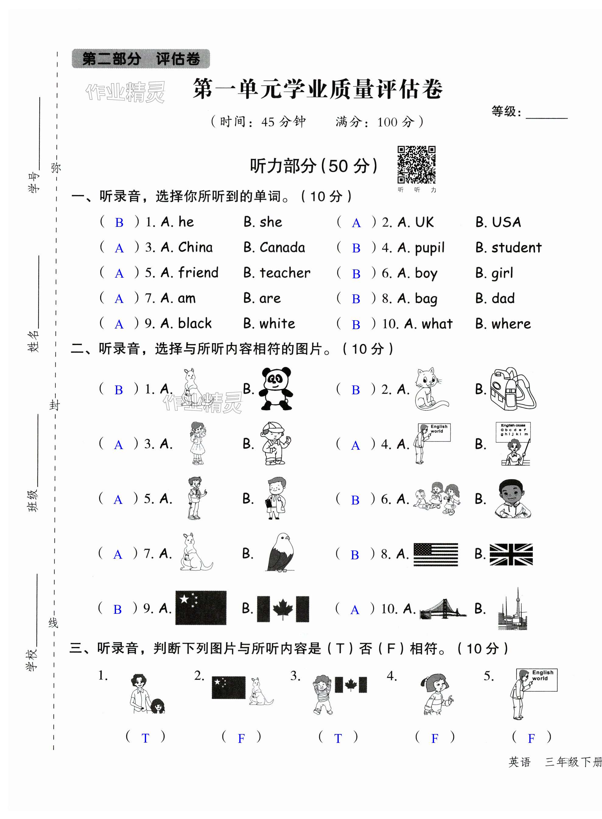 注:目前有些书本章节名称可能整理的还不是很完善,但都是按照顺序排列的,请同学们按照顺序仔细查找。练习册 2024年名师面对面先学后练三年级英语下册人教版 答案主要是用来给同学们做完题方便对答案用的,请勿直接抄袭。