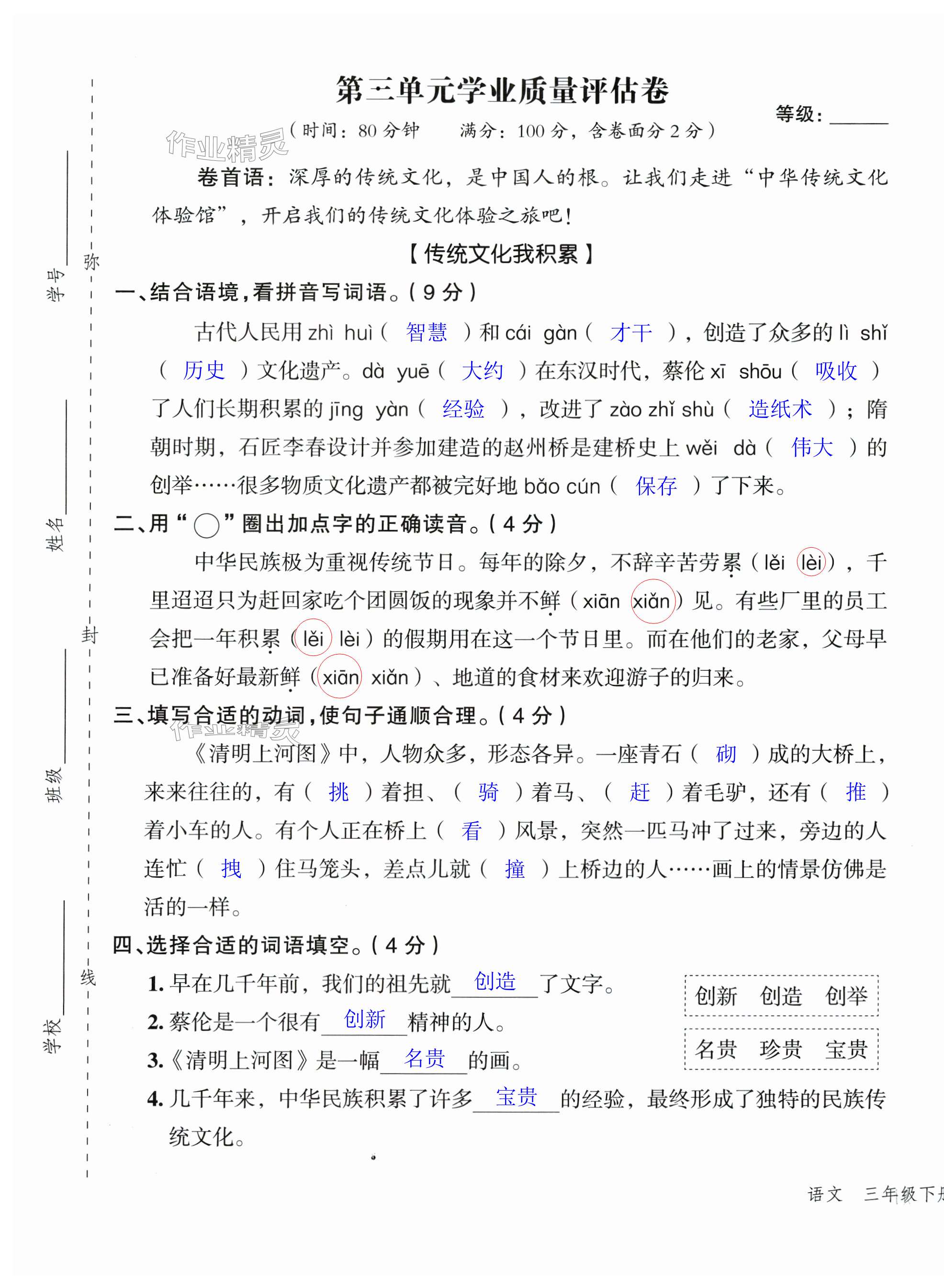 注:目前有些书本章节名称可能整理的还不是很完善,但都是按照顺序排列的,请同学们按照顺序仔细查找。练习册 2024年名师面对面先学后练三年级语文下册人教版 答案主要是用来给同学们做完题方便对答案用的,请勿直接抄袭。