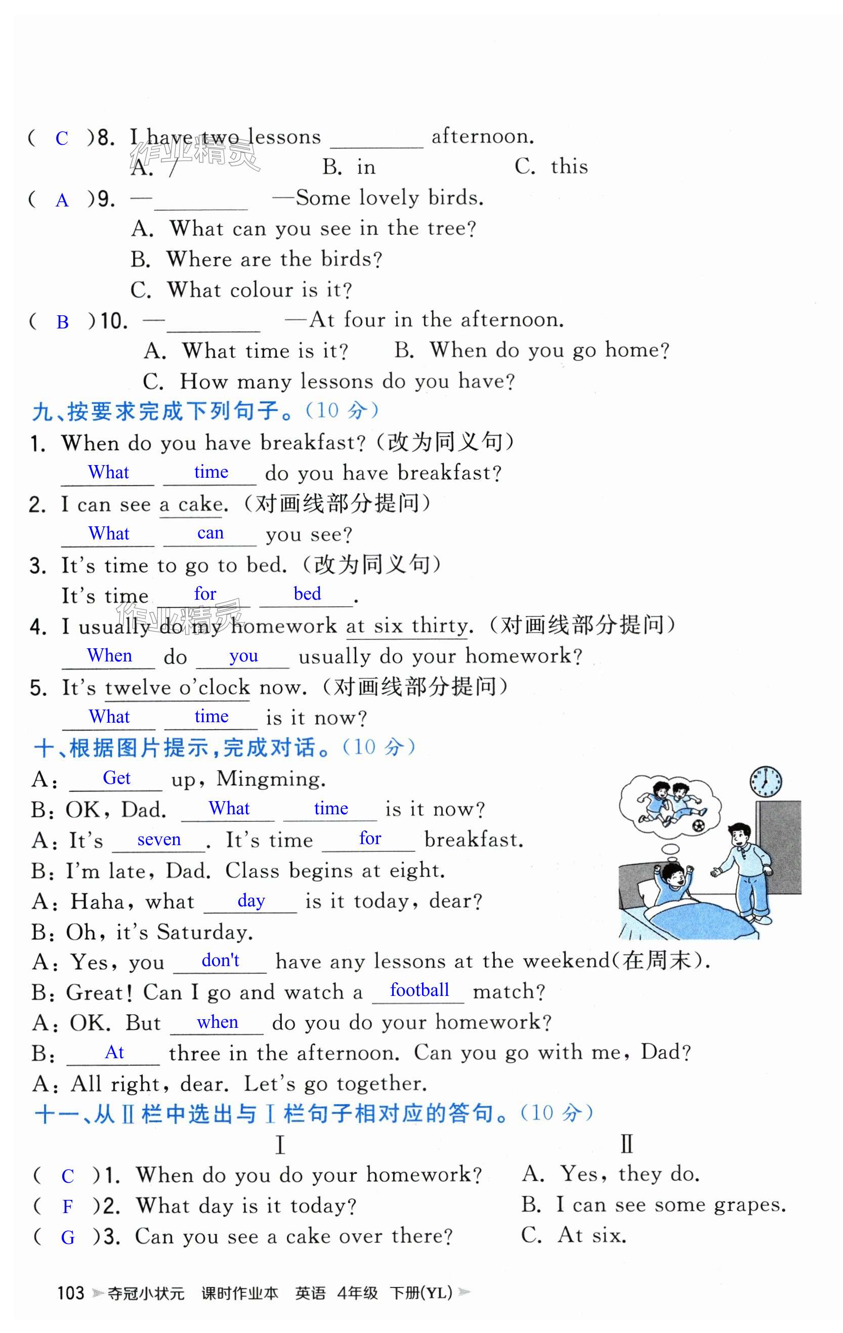 注:目前有些书本章节名称可能整理的还不是很完善,但都是按照顺序排列的,请同学们按照顺序仔细查找。练习册 2024年夺冠小状元课时作业本四年级英语下册译林版 答案主要是用来给同学们做完题方便对答案用的,请勿直接抄袭。