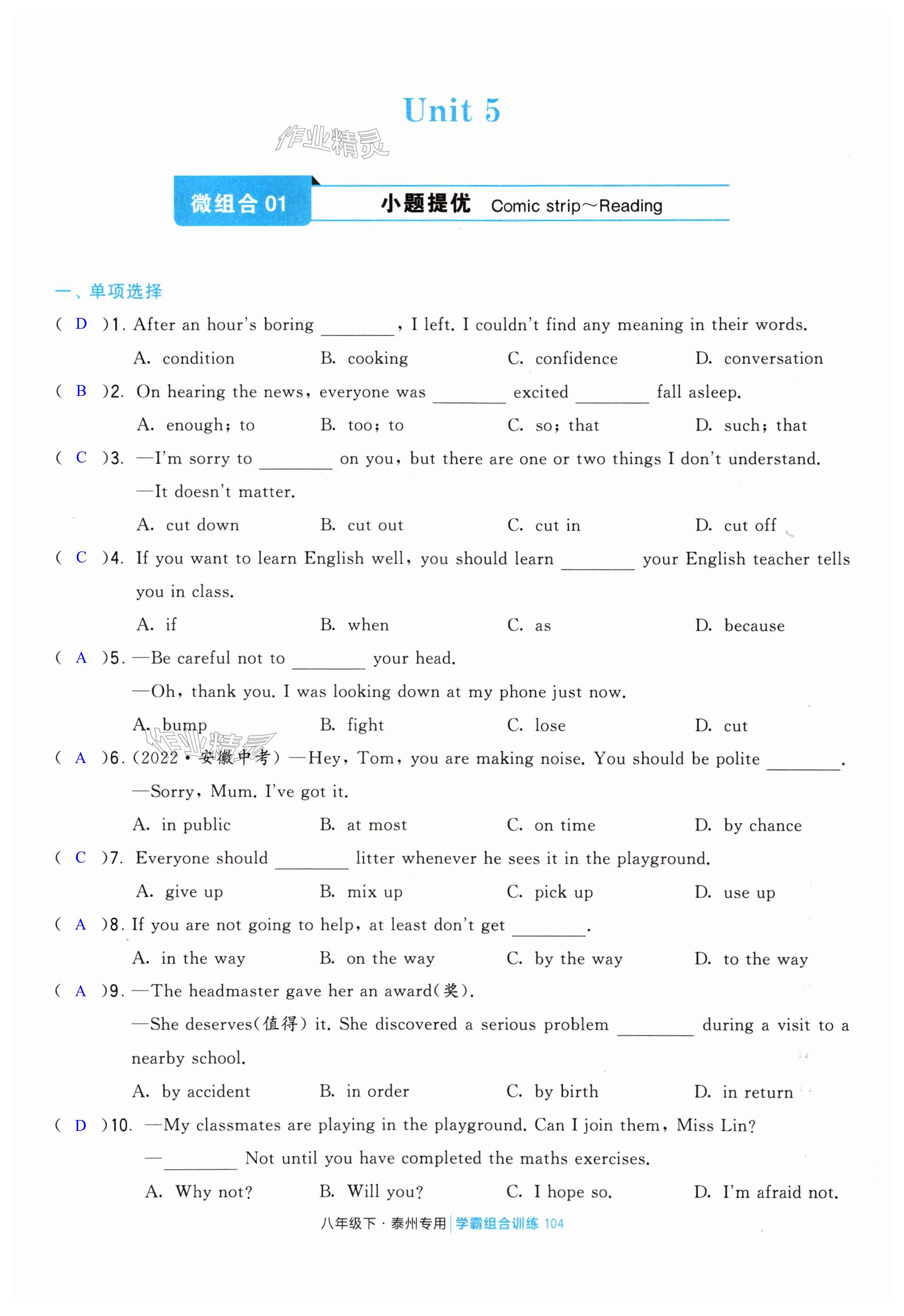 注:目前有些书本章节名称可能整理的还不是很完善,但都是按照顺序排列的,请同学们按照顺序仔细查找。练习册 2024年学霸组合训练八年级英语下册译林版泰州专版 答案主要是用来给同学们做完题方便对答案用的,请勿直接抄袭。