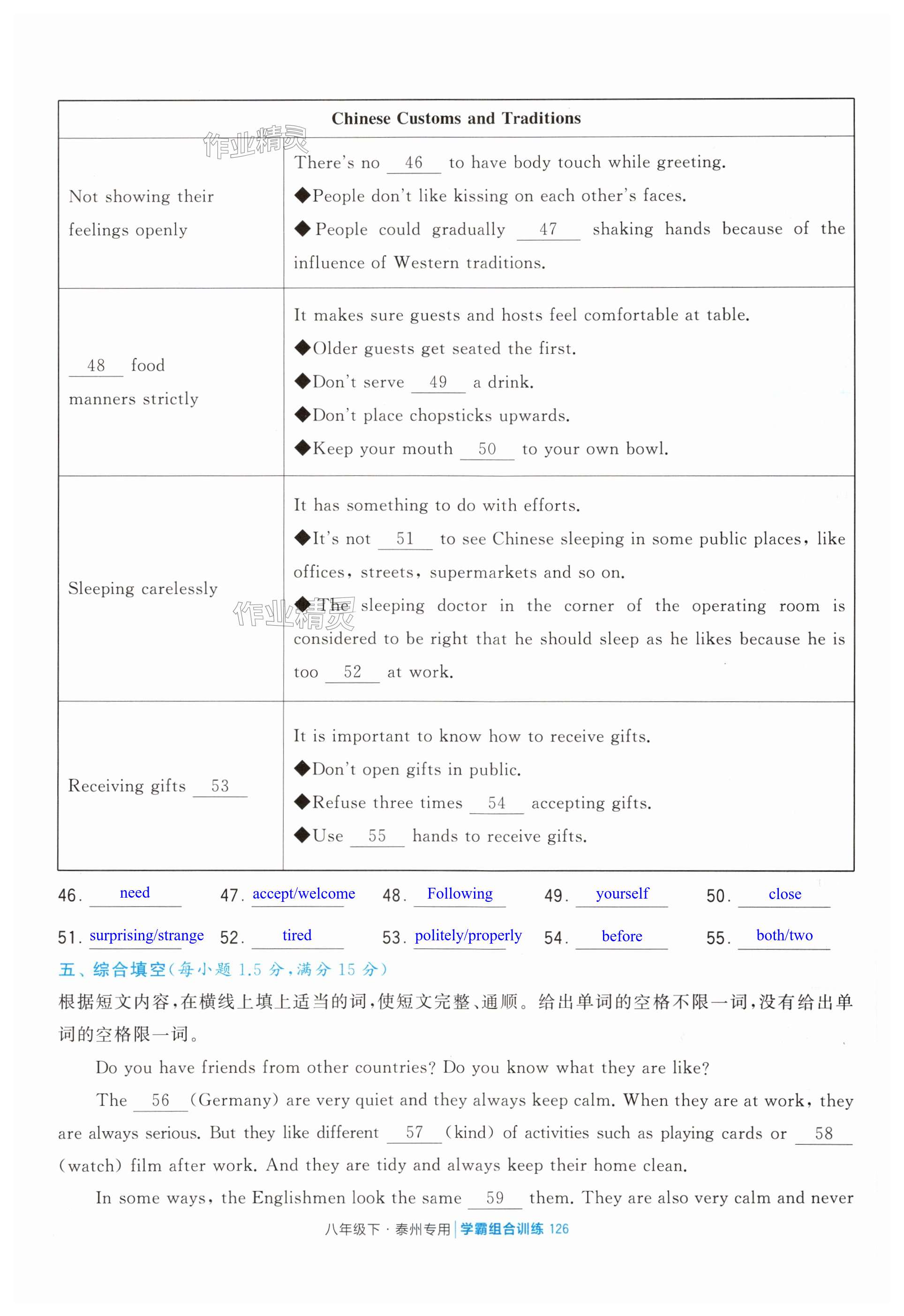 注:目前有些书本章节名称可能整理的还不是很完善,但都是按照顺序排列的,请同学们按照顺序仔细查找。练习册 2024年学霸组合训练八年级英语下册译林版泰州专版 答案主要是用来给同学们做完题方便对答案用的,请勿直接抄袭。