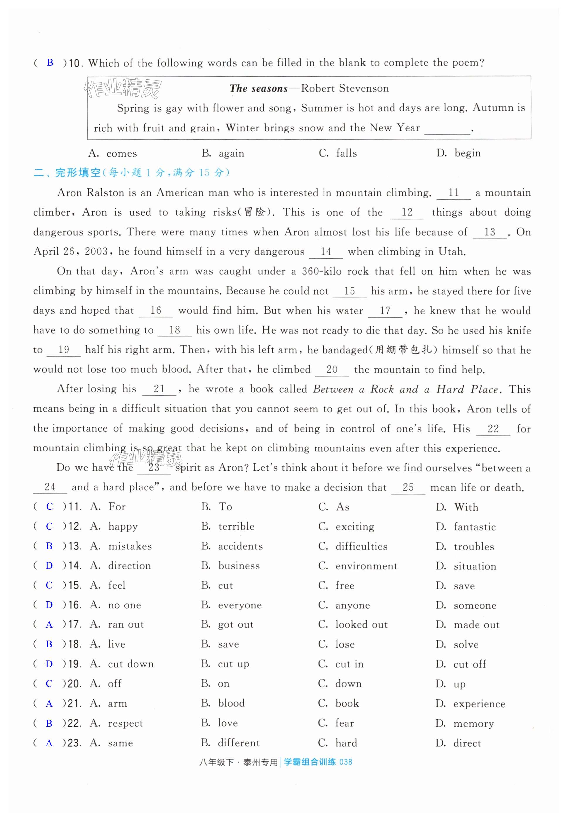注:目前有些书本章节名称可能整理的还不是很完善,但都是按照顺序排列的,请同学们按照顺序仔细查找。练习册 2024年学霸组合训练八年级英语下册译林版泰州专版 答案主要是用来给同学们做完题方便对答案用的,请勿直接抄袭。