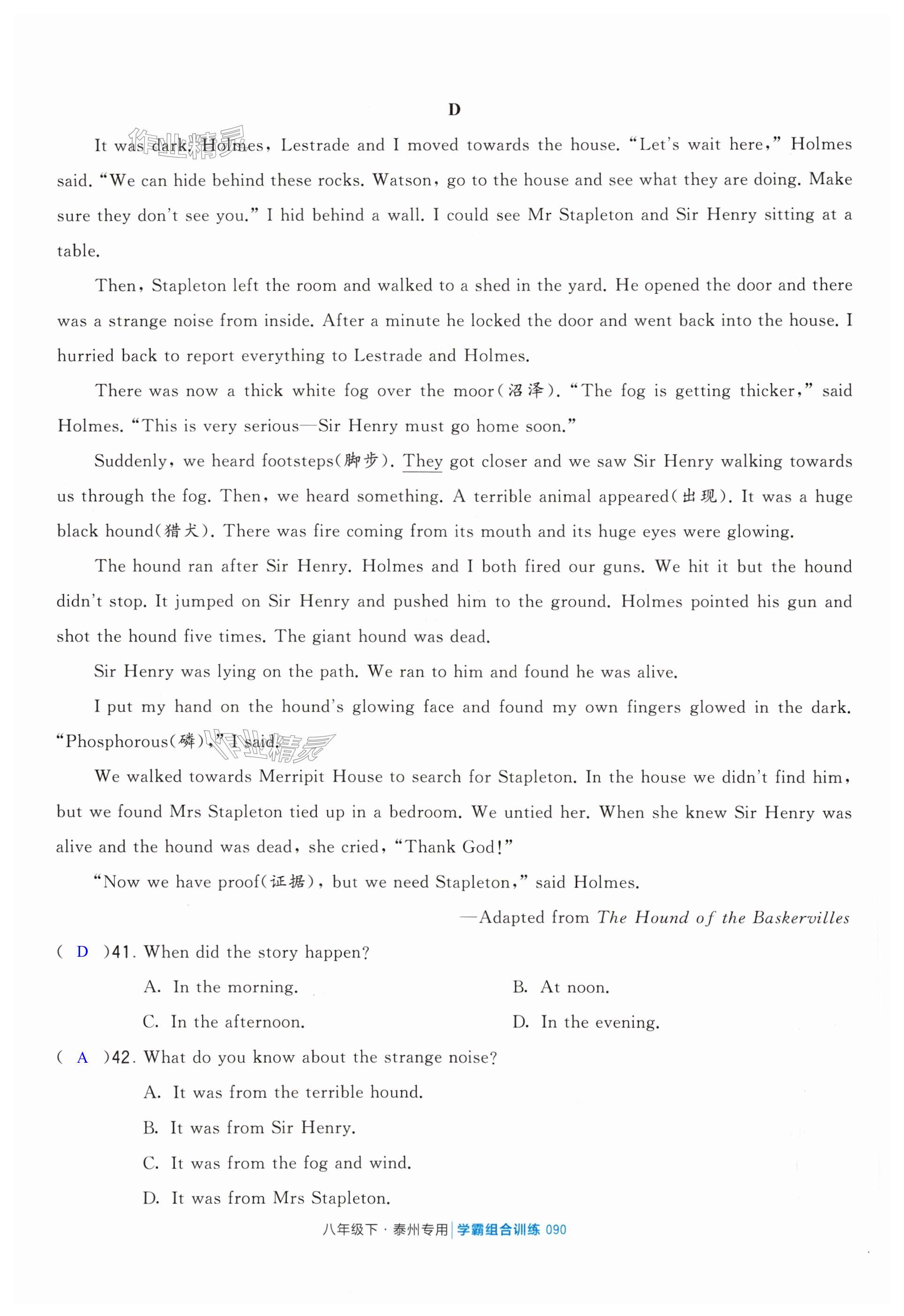 注:目前有些书本章节名称可能整理的还不是很完善,但都是按照顺序排列的,请同学们按照顺序仔细查找。练习册 2024年学霸组合训练八年级英语下册译林版泰州专版 答案主要是用来给同学们做完题方便对答案用的,请勿直接抄袭。