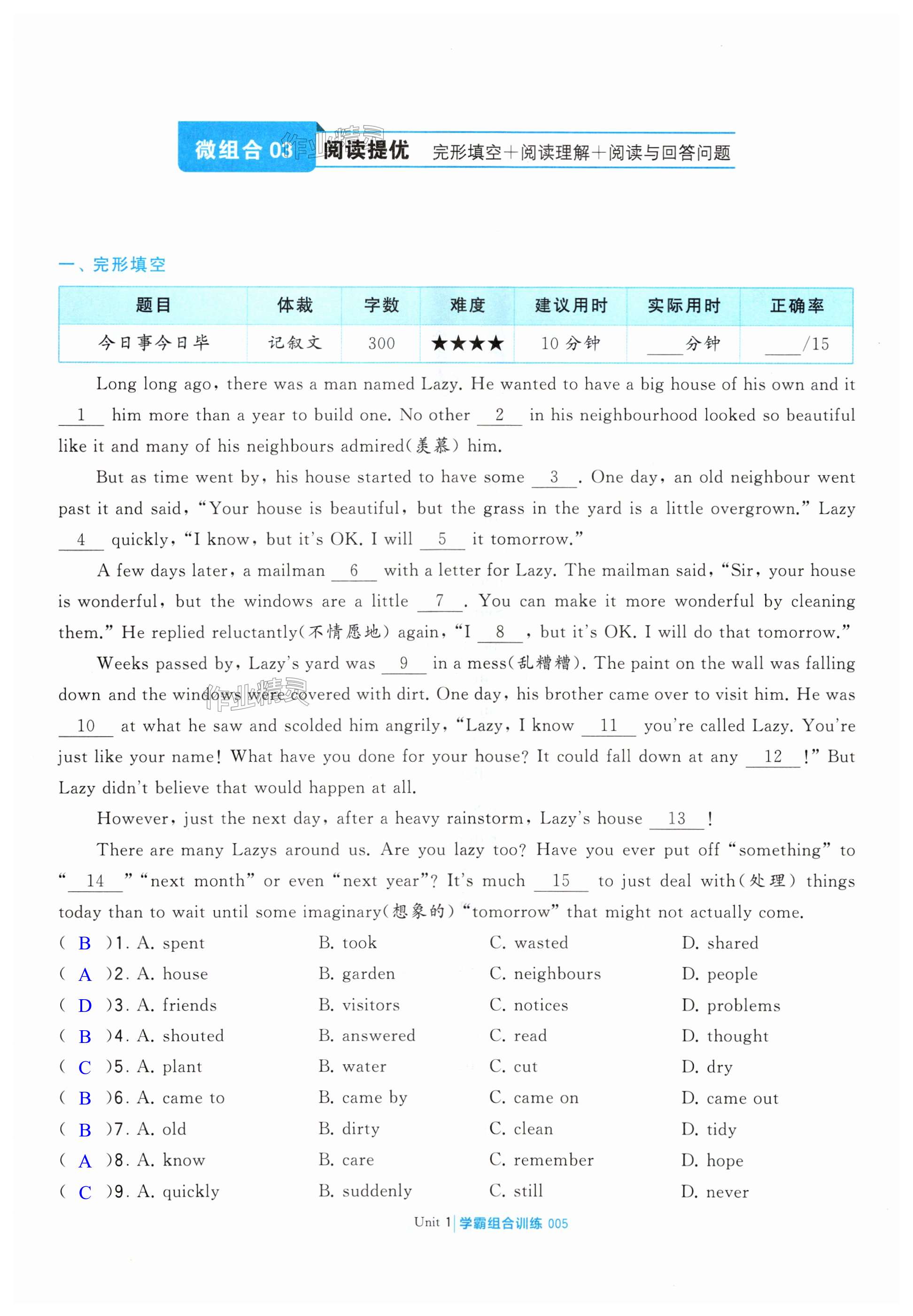 注:目前有些书本章节名称可能整理的还不是很完善,但都是按照顺序排列的,请同学们按照顺序仔细查找。练习册 2024年学霸组合训练七年级英语下册译林版南通专版 答案主要是用来给同学们做完题方便对答案用的,请勿直接抄袭。