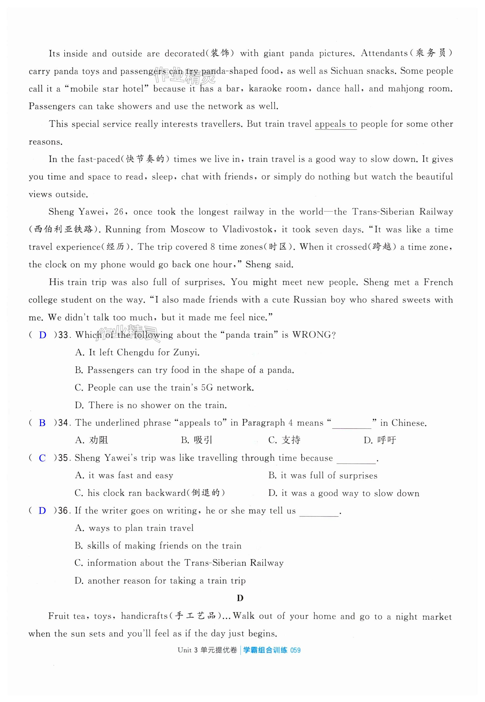 注:目前有些书本章节名称可能整理的还不是很完善,但都是按照顺序排列的,请同学们按照顺序仔细查找。练习册 2024年学霸组合训练七年级英语下册译林版南通专版 答案主要是用来给同学们做完题方便对答案用的,请勿直接抄袭。