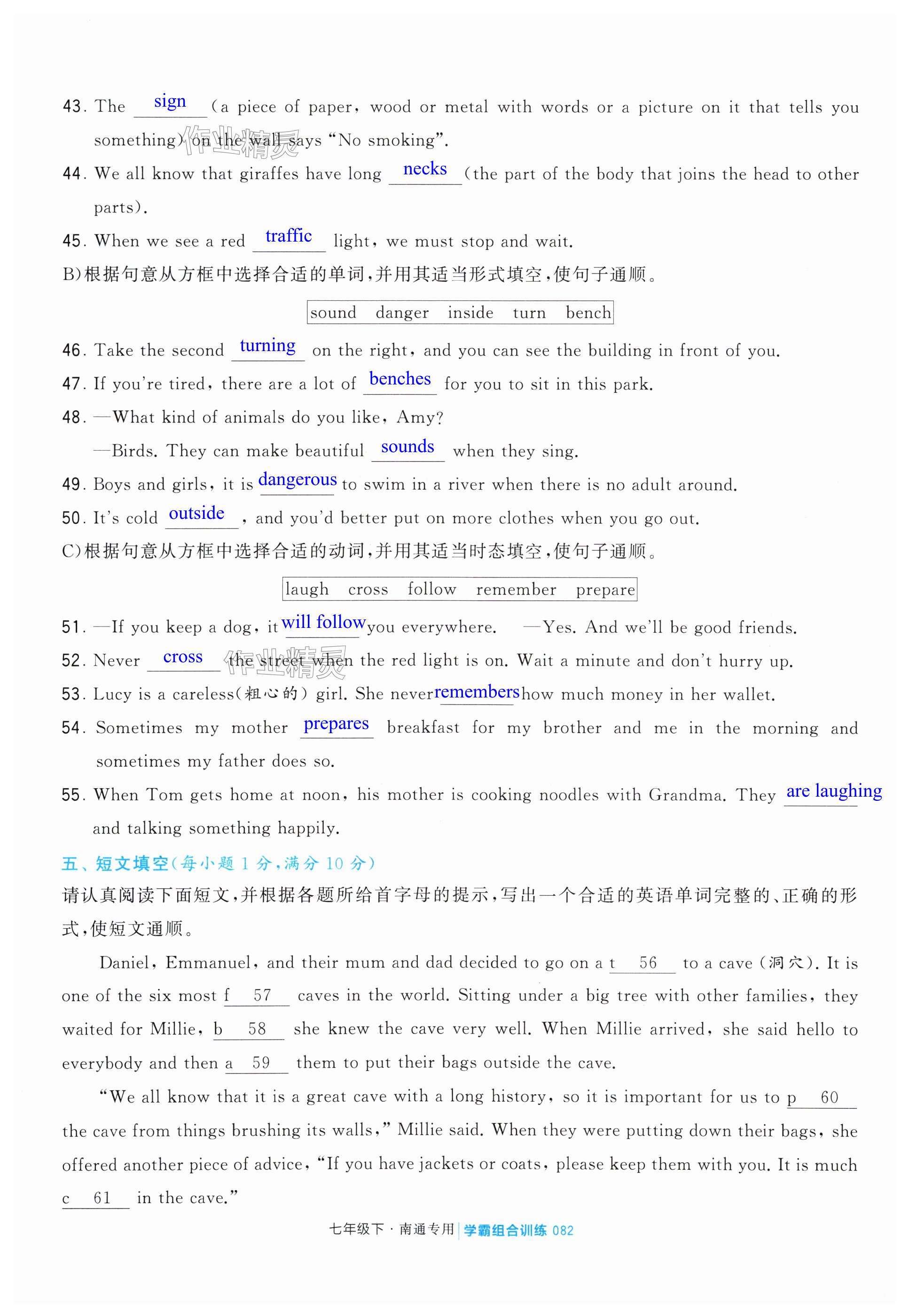 注:目前有些书本章节名称可能整理的还不是很完善,但都是按照顺序排列的,请同学们按照顺序仔细查找。练习册 2024年学霸组合训练七年级英语下册译林版南通专版 答案主要是用来给同学们做完题方便对答案用的,请勿直接抄袭。