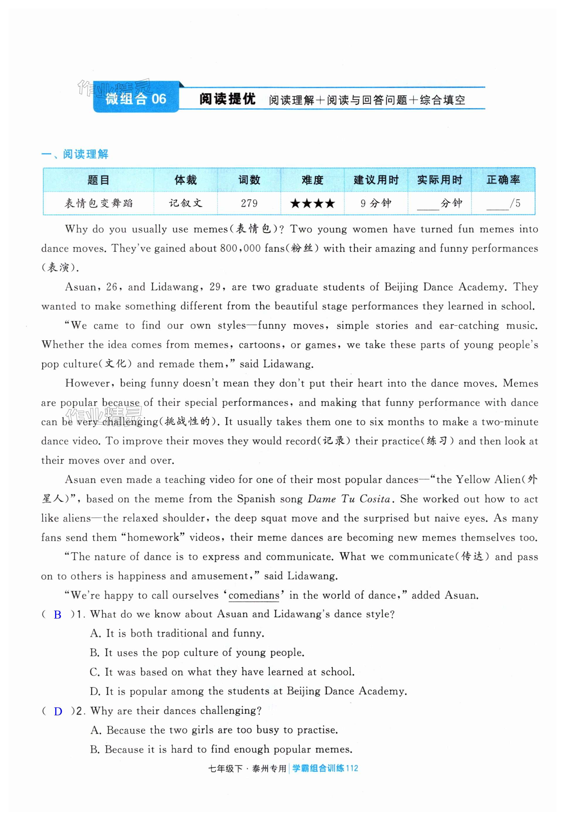注:目前有些书本章节名称可能整理的还不是很完善,但都是按照顺序排列的,请同学们按照顺序仔细查找。练习册 2024年学霸组合训练七年级英语下册译林版泰州专版 答案主要是用来给同学们做完题方便对答案用的,请勿直接抄袭。