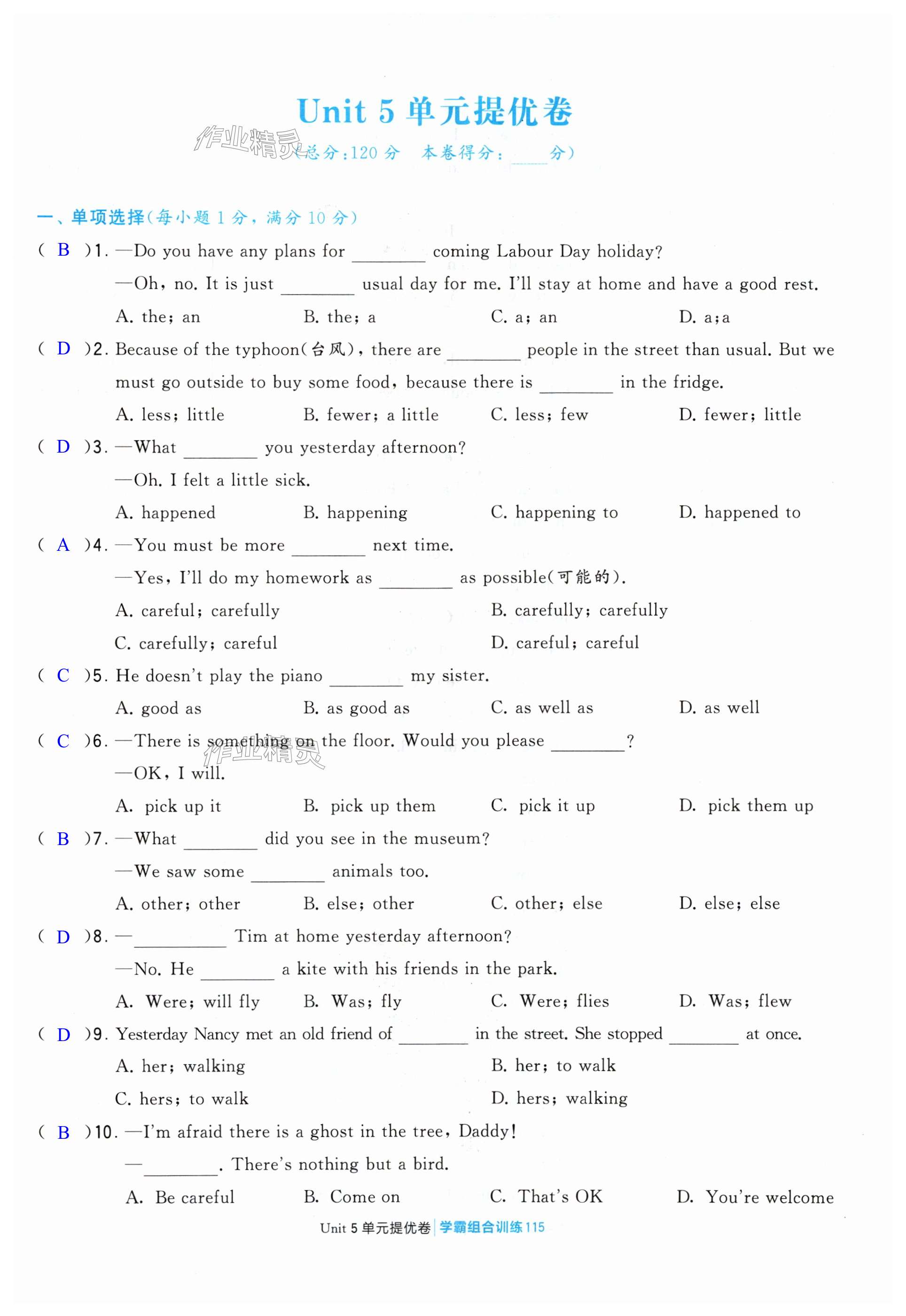 注:目前有些书本章节名称可能整理的还不是很完善,但都是按照顺序排列的,请同学们按照顺序仔细查找。练习册 2024年学霸组合训练七年级英语下册译林版泰州专版 答案主要是用来给同学们做完题方便对答案用的,请勿直接抄袭。