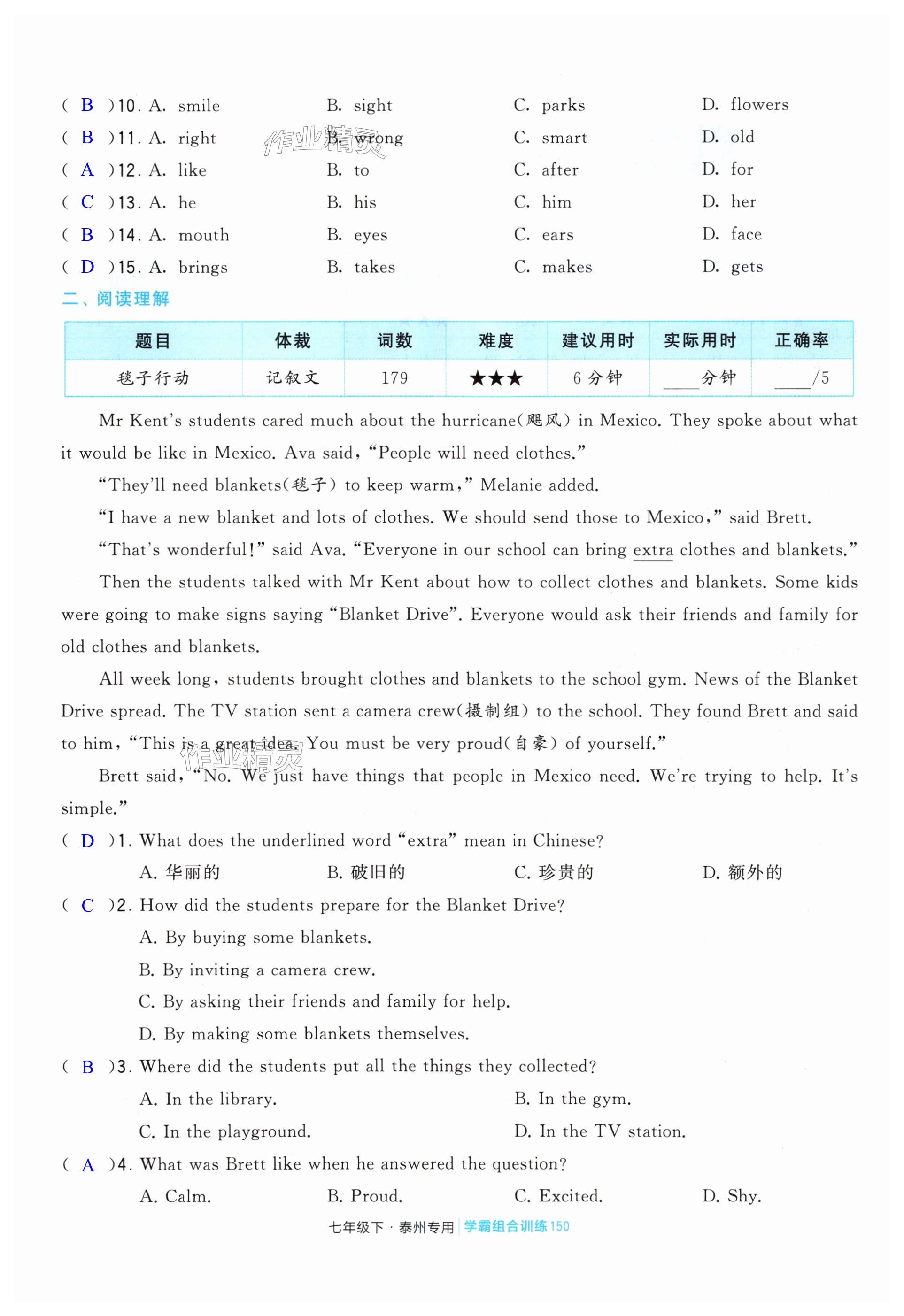 注:目前有些书本章节名称可能整理的还不是很完善,但都是按照顺序排列的,请同学们按照顺序仔细查找。练习册 2024年学霸组合训练七年级英语下册译林版泰州专版 答案主要是用来给同学们做完题方便对答案用的,请勿直接抄袭。