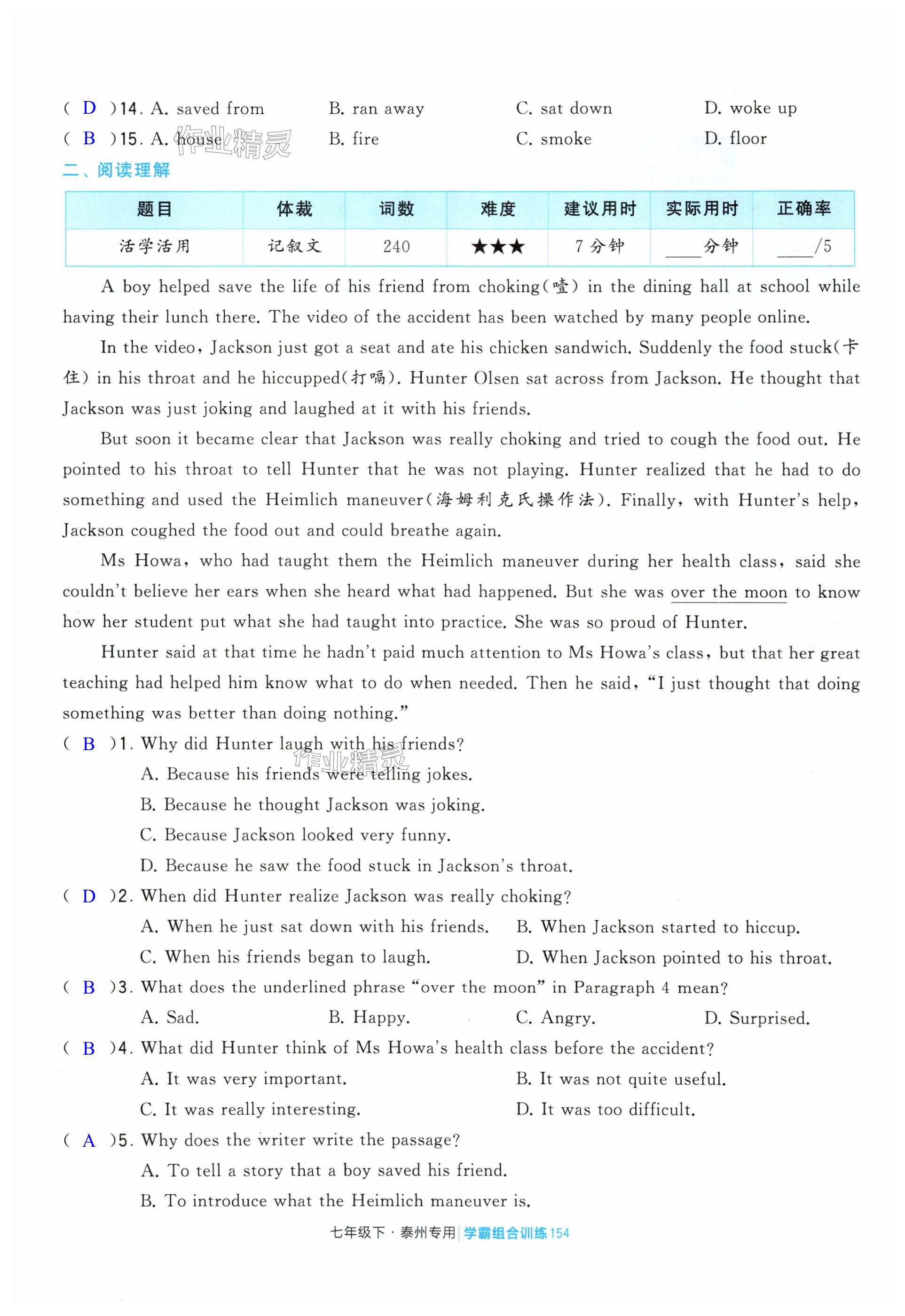 注:目前有些书本章节名称可能整理的还不是很完善,但都是按照顺序排列的,请同学们按照顺序仔细查找。练习册 2024年学霸组合训练七年级英语下册译林版泰州专版 答案主要是用来给同学们做完题方便对答案用的,请勿直接抄袭。