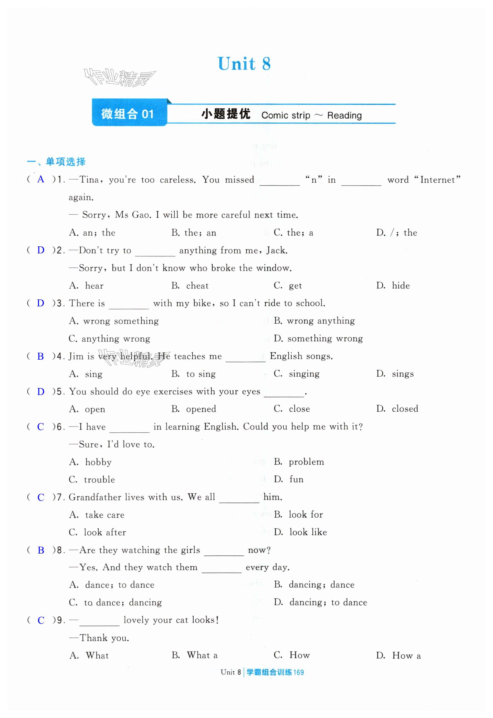 注:目前有些书本章节名称可能整理的还不是很完善,但都是按照顺序排列的,请同学们按照顺序仔细查找。练习册 2024年学霸组合训练七年级英语下册译林版泰州专版 答案主要是用来给同学们做完题方便对答案用的,请勿直接抄袭。
