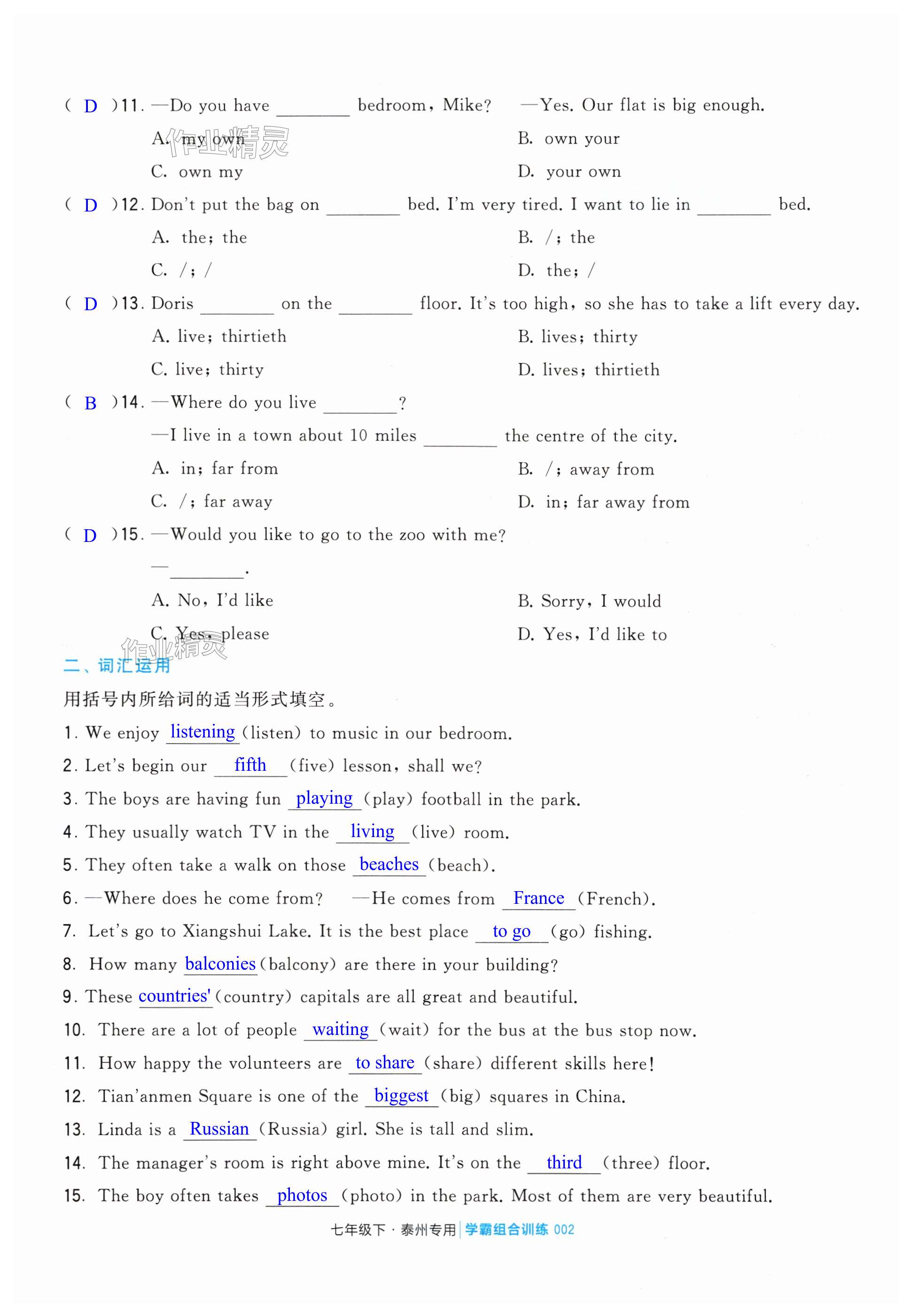 2024年学霸组合训练七年级英语下册译林版泰州专版