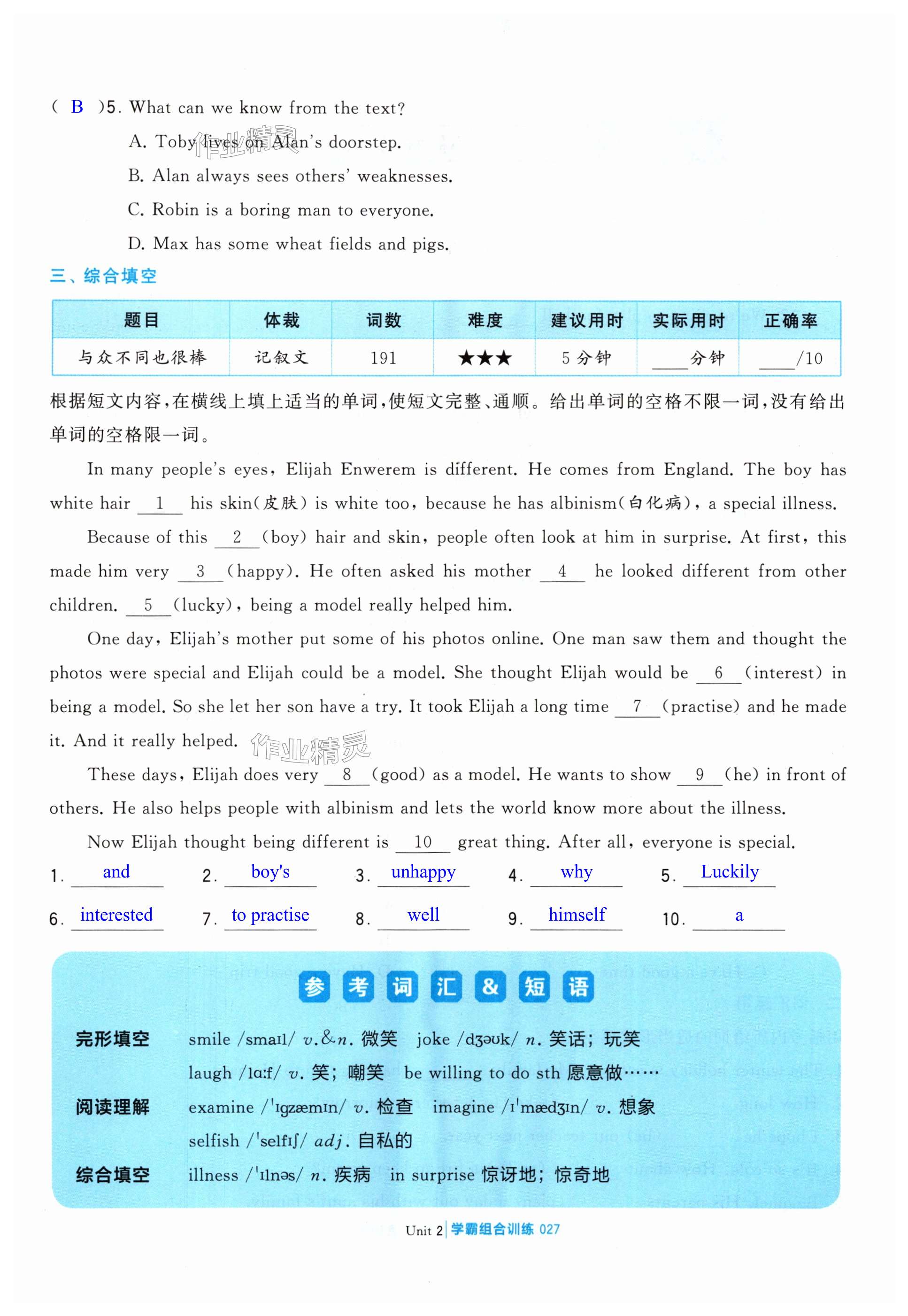 注:目前有些书本章节名称可能整理的还不是很完善,但都是按照顺序排列的,请同学们按照顺序仔细查找。练习册 2024年学霸组合训练七年级英语下册译林版泰州专版 答案主要是用来给同学们做完题方便对答案用的,请勿直接抄袭。