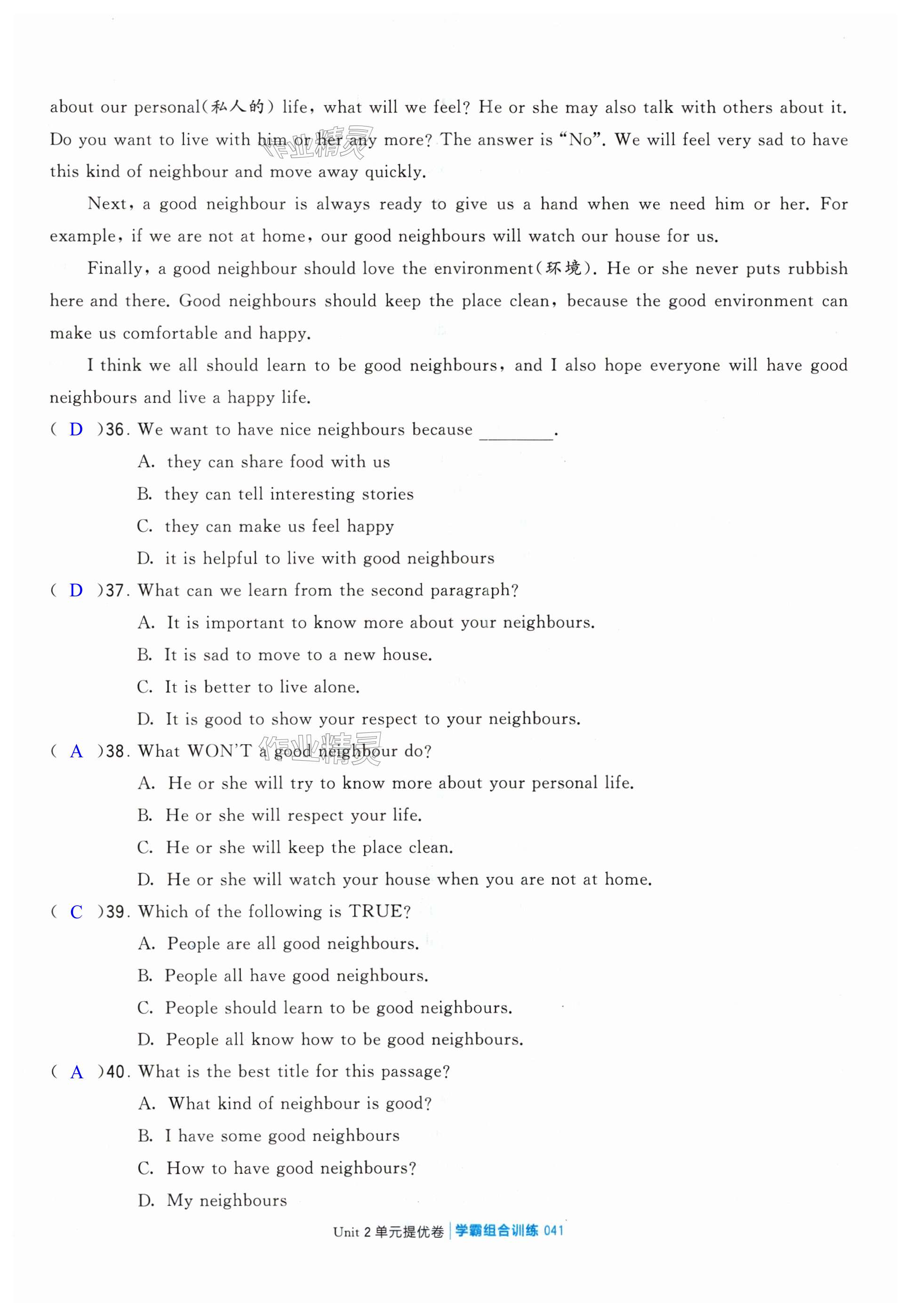 注:目前有些书本章节名称可能整理的还不是很完善,但都是按照顺序排列的,请同学们按照顺序仔细查找。练习册 2024年学霸组合训练七年级英语下册译林版泰州专版 答案主要是用来给同学们做完题方便对答案用的,请勿直接抄袭。
