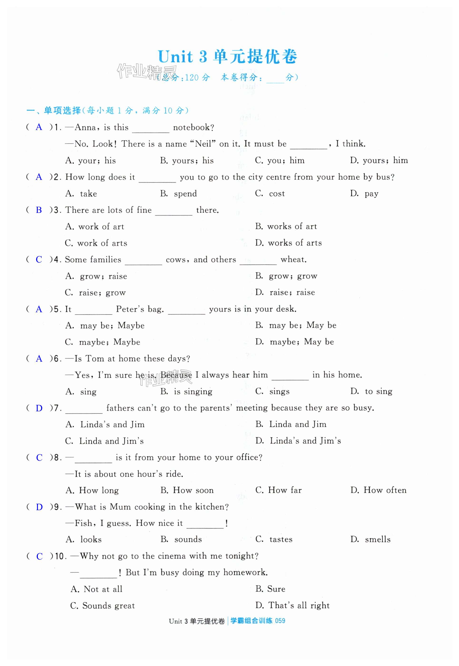 注:目前有些书本章节名称可能整理的还不是很完善,但都是按照顺序排列的,请同学们按照顺序仔细查找。练习册 2024年学霸组合训练七年级英语下册译林版泰州专版 答案主要是用来给同学们做完题方便对答案用的,请勿直接抄袭。